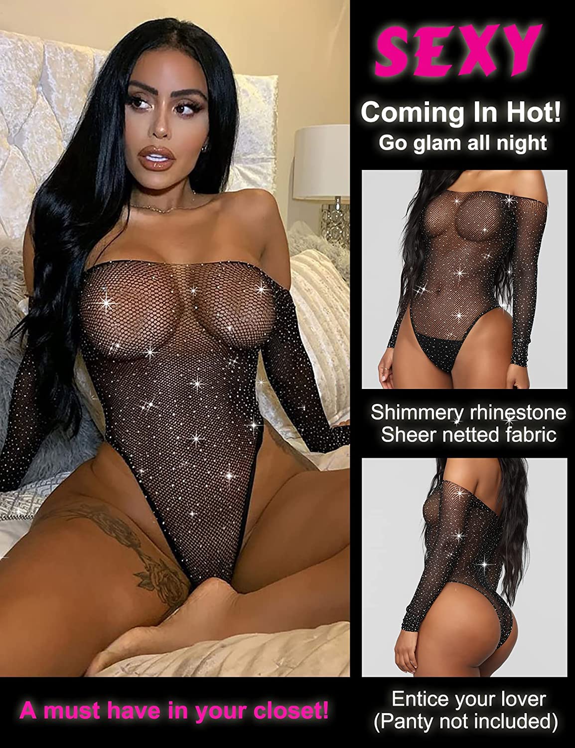 Package Including: One Sparkle Rhinestone Fishnets Bodysuit (G-string is not included). Garment care:hand wash recommended and hang dry