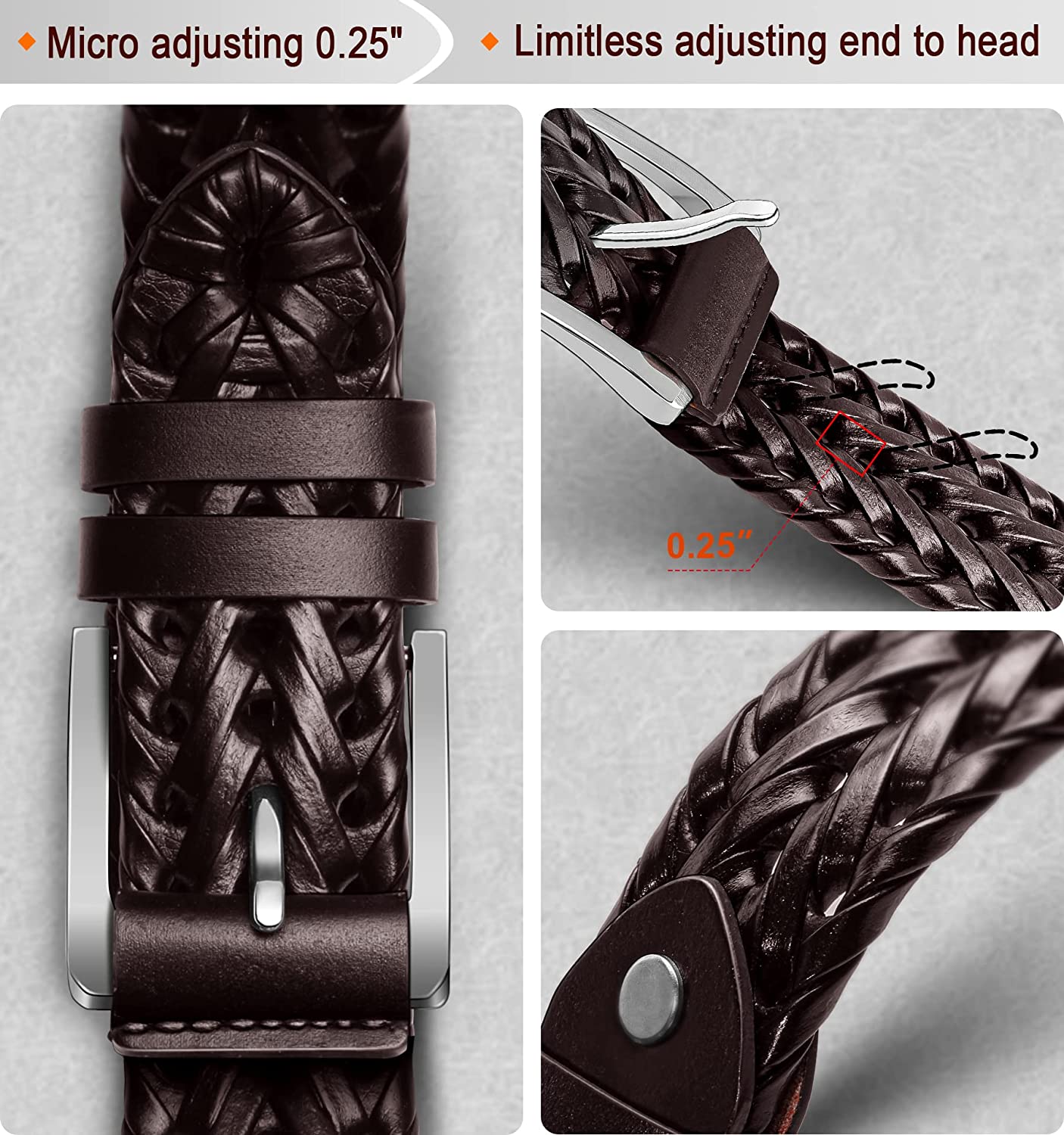 - Always-Fit--This Leather woven braided belt enable the buckle lock in any hole in the strip, thus get exact fit on your waist;