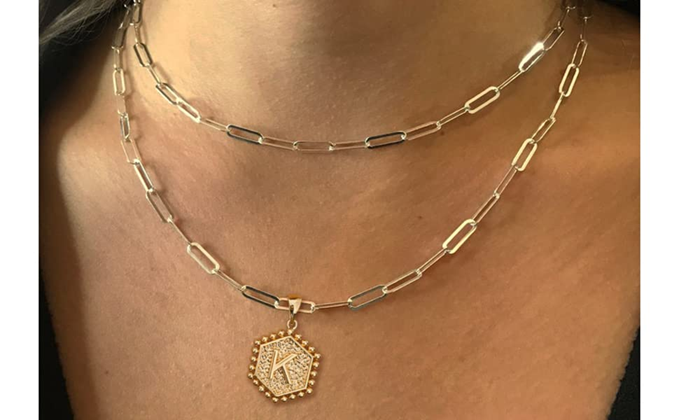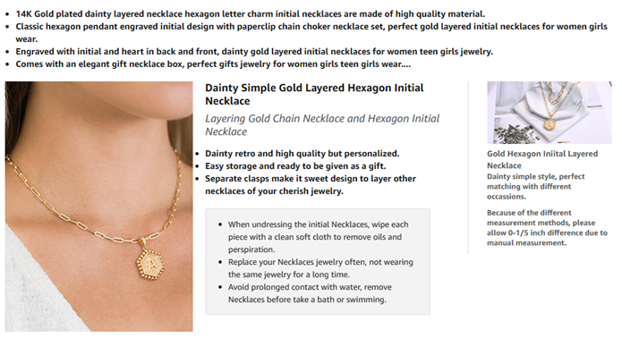 • LAYERING INITIAL NECKLACES: Gold layered paperclip chain letter initial necklaces set with hexagon charm, engraved with initial and heart in back and front, large initial pendant dainty necklaces for women teen girls jewelry.