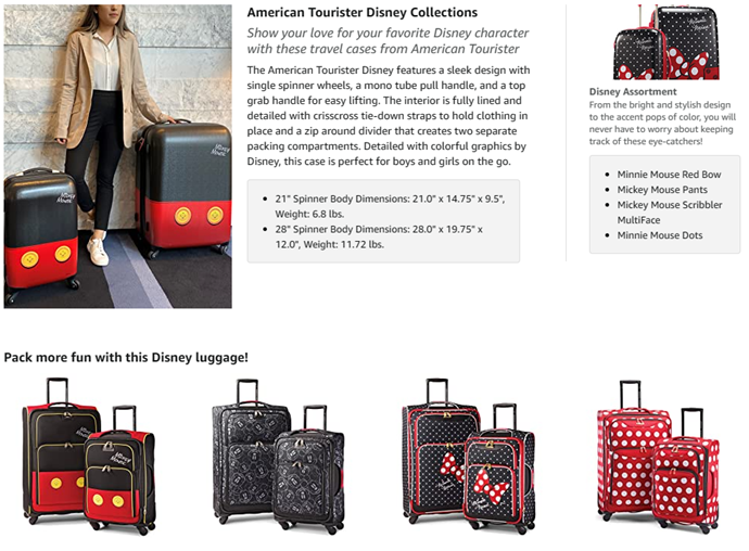American Tourister Disney Hardside Luggage with Spinner Wheels, Black, Red, White, 21"