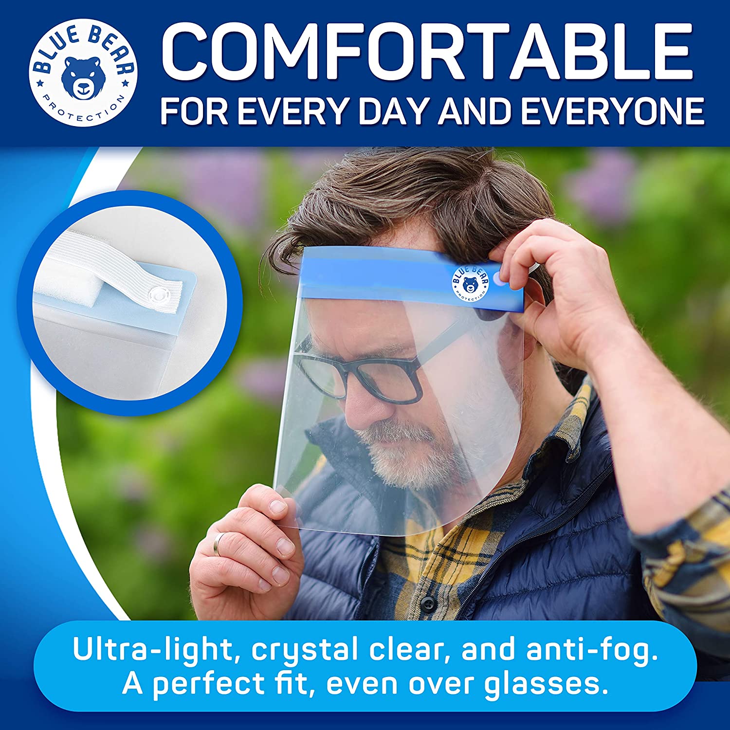 BLUE BEAR PROTECTION Face Shield Protection, Adult Face Shield, Protective Face Shields for Women and Men, Clear Face Shield, Face Shield Mask Reusable, Mask Shield (Pack of 10)