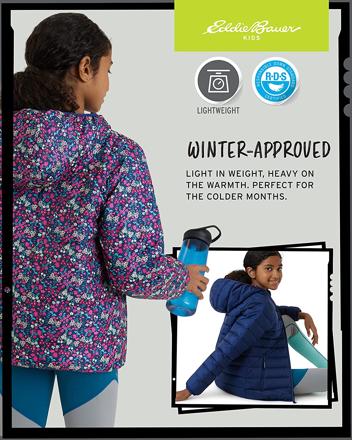 Eddie Bauer Kids' Reversible Jacket - Lightweight Waterproof Quilted Down Raincoat for Boys and Girls (3-20)