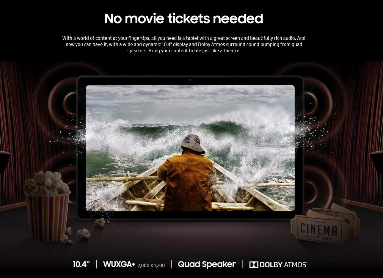 Your new window to the worldWith a slim design, a vibrant entertainment system, and outstanding performance, the new Galaxy Tab A7 is a stylish new companion for your life. Dive head-first into the things you love, and easily share your favorite moments. Learn, explore, connect, and be inspired. Slim. Stylish. Sophisticated.Galaxy Tab A7 is built to impress—a true head-turner that offers great immersive experiences. With beautiful symmetry and a thickness of just 7mm, it features a sophisticated metal design in three colors, Dark Grey, Silver, and Gold, and asymmetric bezel all the way around. No movie tickets neededWith a world of content at your fingertips, all you need is a tablet with a great screen and beautifully rich audio. And now you can have it, with a wide and dynamic 10.4" display and Dolby Atmos surround sound pumping from quad speakers. Bring your content to life just like a theatre. All the power you need for epic gamingMore playing, less waiting. Thanks to a fast processor and powerful RAM, your game loads quickly and runs smoothly. A huge 7,040mAh (typical) battery powers you through the day, and when you're running low, 15W Fast Charging will quickly get you back to 100%. Store more of what you loveGalaxy Tab A7 comes with 32GB storage built-in for all your high-resolution videos, photos, and files. You can then expand it with a microSD card for even more storage — up to 1TB(Not Included). Store more of what you love and delete less.