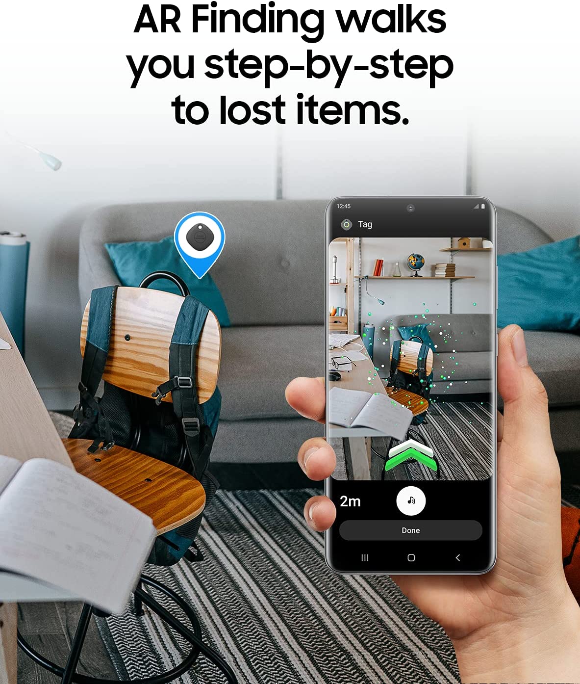 • AR FINDING: This walks you step-by-step to the lost item, and gives you a uniquely visual way to locate it with a SmartTag plus attached; It even lets you know you're close with a glimmering green sensor light when you're at the destination; It shows you the way on your mobile phone screen through the SmartThings app