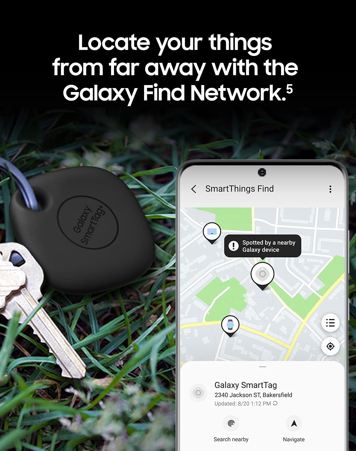 • RECOVERY FROM FAR AWAY: Your tagged item is out of range. No problem. Even when offline, the Galaxy Find Network can use scanned data to find it privately; You can also switch to other devices you own, like your tablet or smart watch, to locate your items