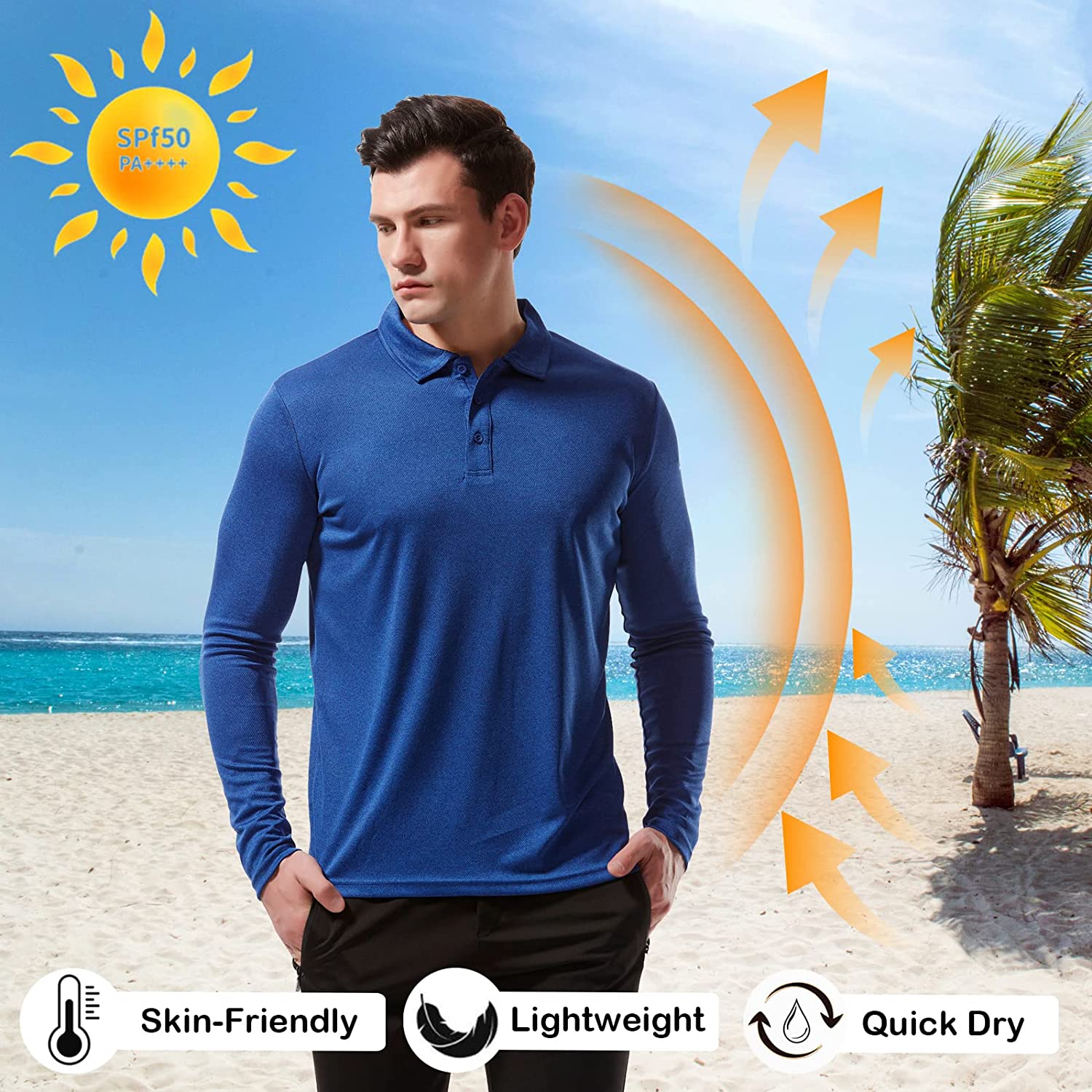 【Breathable Fabric】: This mens golf shirts made of 100% Polyester. Lightweight and quick-dry, providing superior comfort all day long, on and off the golf course.