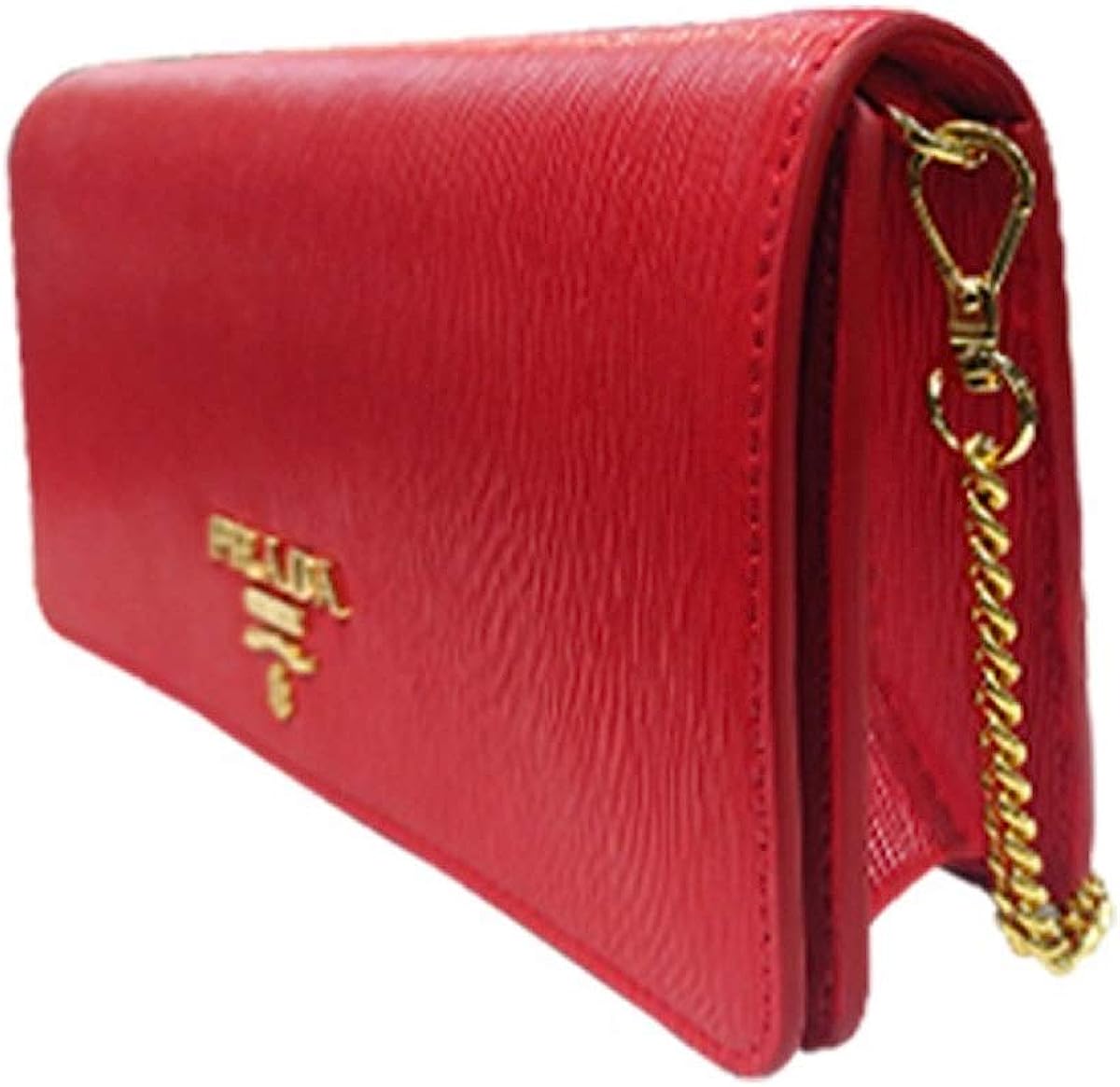 Elevate your look with this Prada Vitello Move chain wallet! This piece is crafted from Lacca red calfskin leather, featuring the iconic gold Prada logo on the front face.
