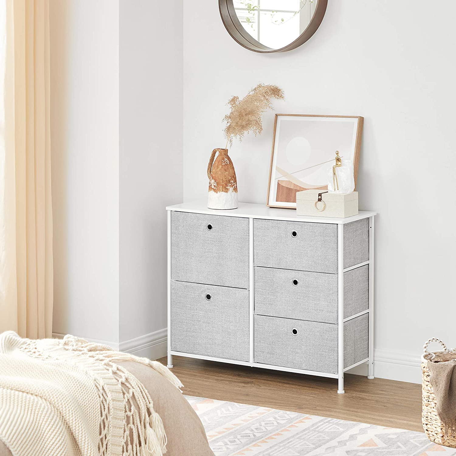 Tidy Home, Happy Life: Is your should-be relaxing home taken over by scattered blankets, magazines, and clothes? Check out this solution—stash them in this vertical dresser with 5 drawers, and a calm and happy home is not far away