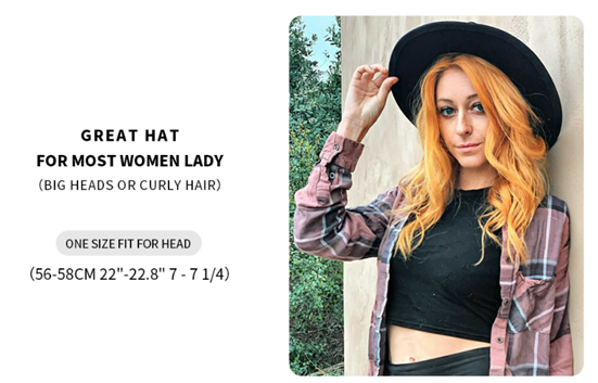 • SIZE:One size fit all most women. Hat Circumference 22.6'',Fit 22"-22.8" 7 1/8-7 1/4 Size; Brim 2.9" .You can adjust the size of the hat through the adjust band inside in the hat.