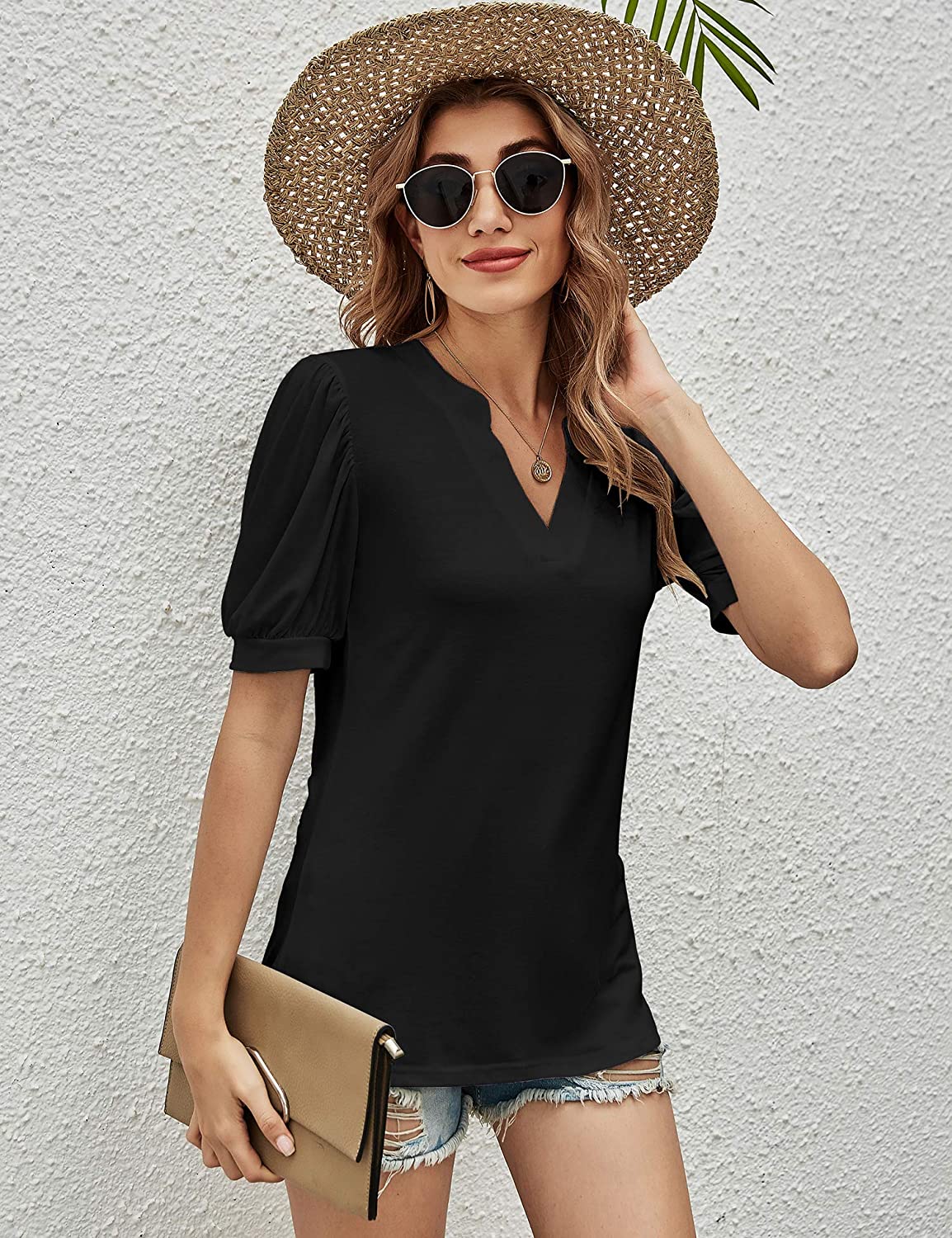 Soft and Breathable Material: Made with premium quality fabric, the short sleeve blouses are soft, stretchy, and lightweight, providing you with a comfortable and enjoyable wearing experience.