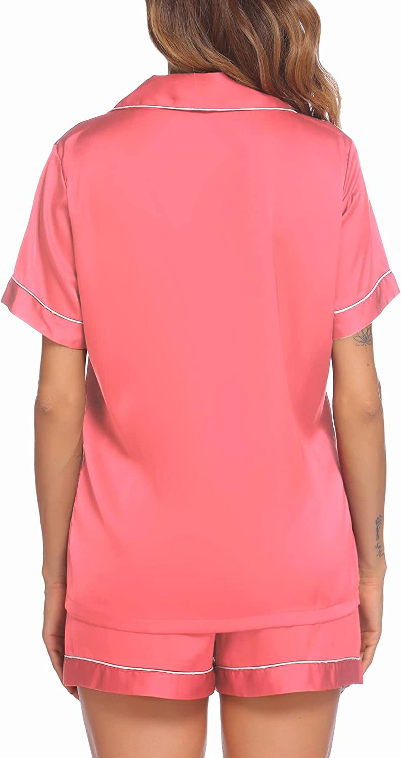 Pajama Top:Short sleeve sleepwear with notch collar,button front pajamas shirt and one chest pocket design.Lightweight and Skin-friendly silk pajamas for women.Great for sleeping,casual wear or lounging around the house or yard all day