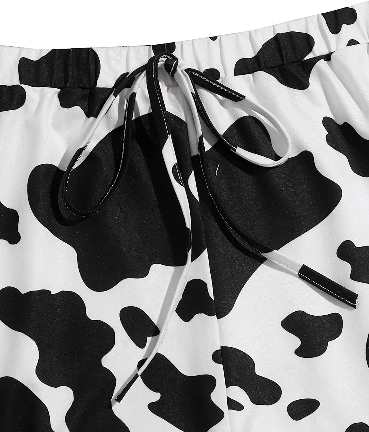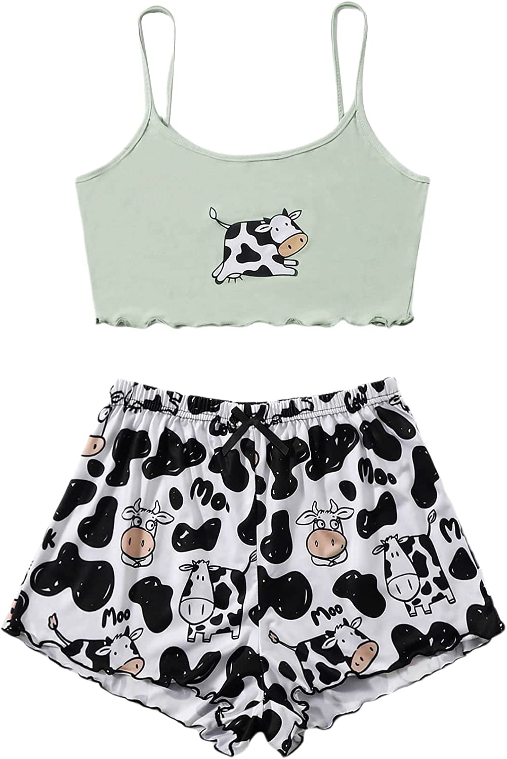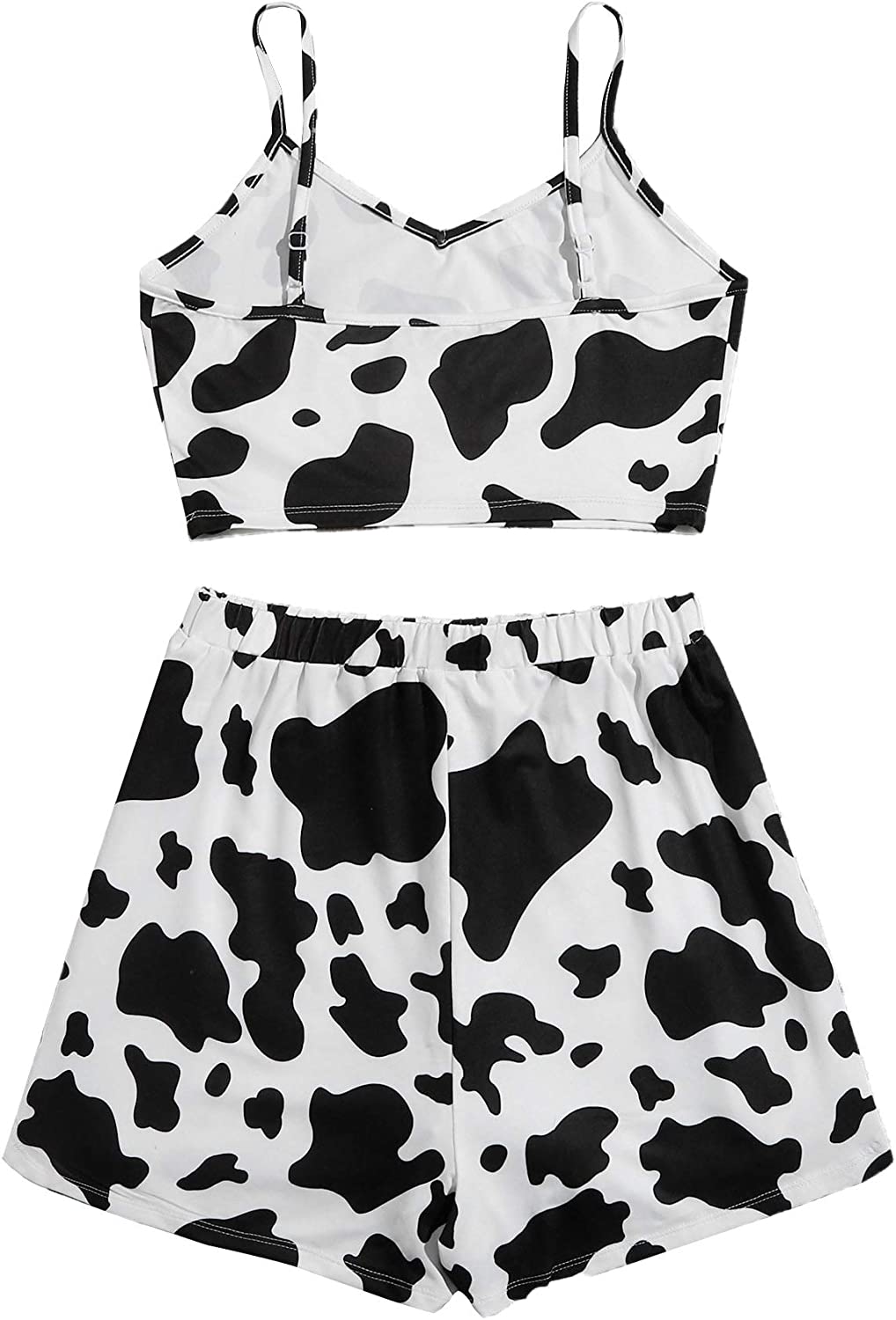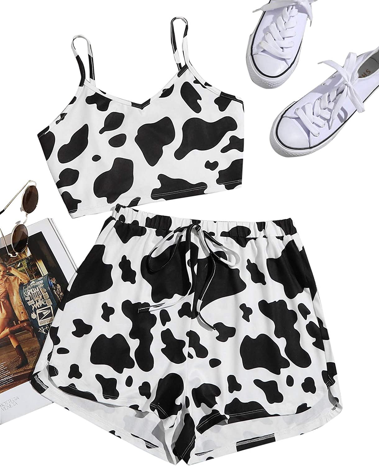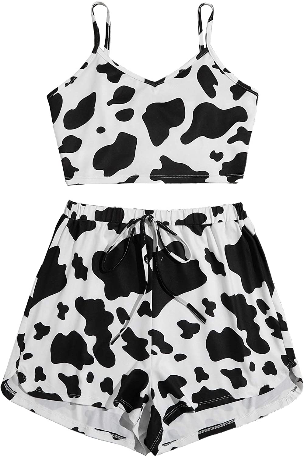 SheIn Women's Sleepwear Set Cow Print Cami Top with Drawstring Shorts Casual Cute Pajama Set