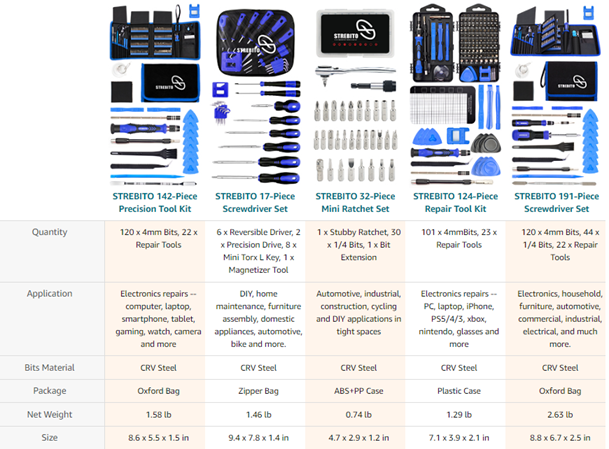 STREBITO Screwdriver Sets 142-Piece Electronics Precision Screwdriver with 120 Bits Magnetic Repair Tool Kit for iPhone, MacBook, Computer, Laptop, PC, Tablet, PS4, Xbox, Nintendo, Game Console