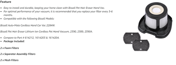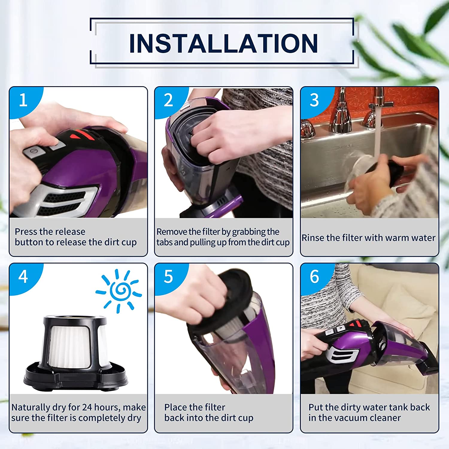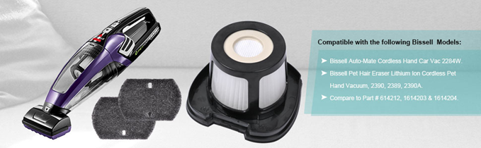 • 【COMPATIBILITY】: These vacuum filter replacement set compatible with Bissell pet hair eraser lithium ion cordless pet hand vacuum 2284W 2390 2389 2390A