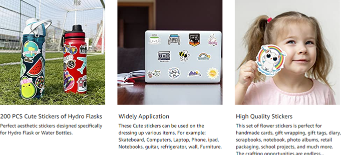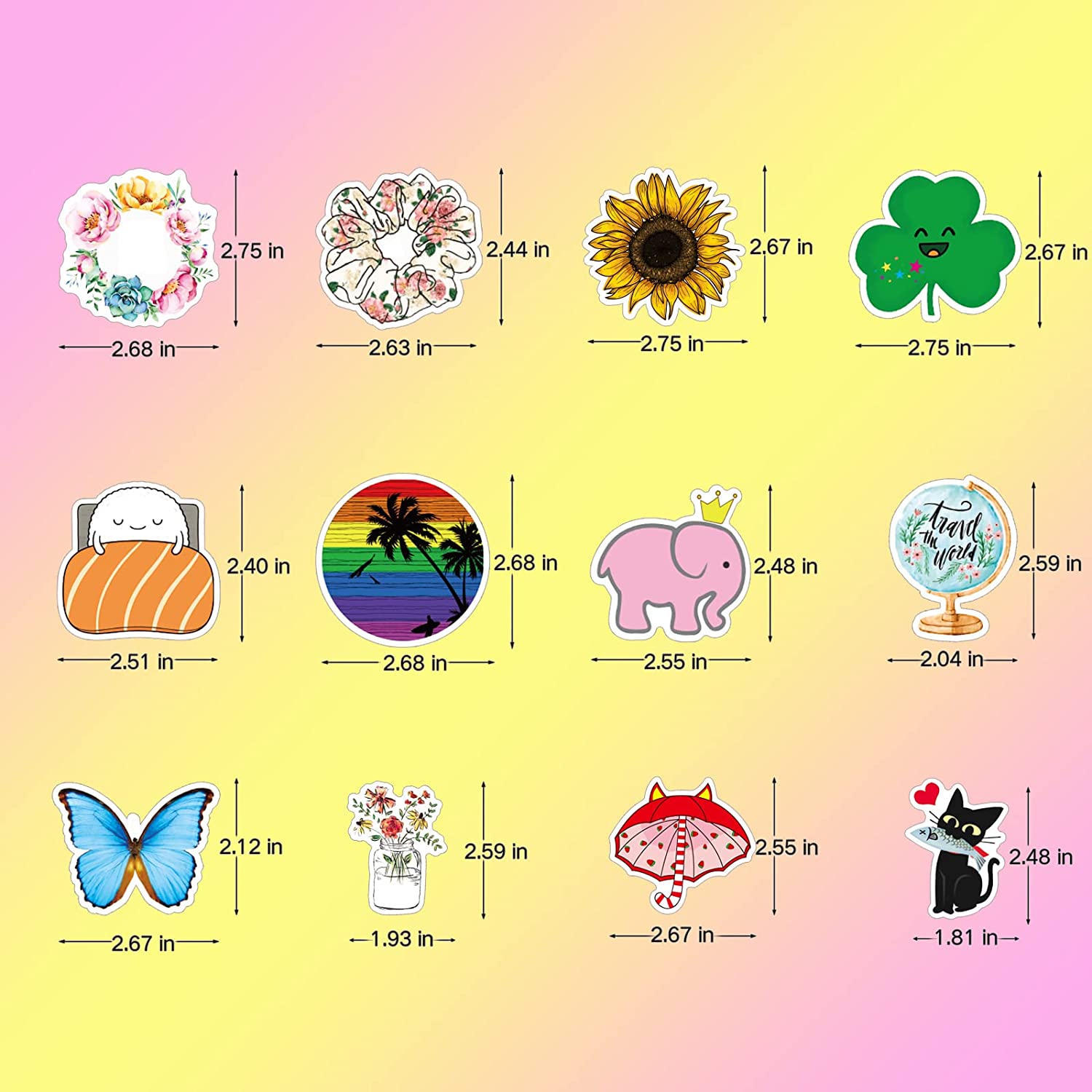 These Cute Vinyl Waterproof Stickers contain 200 pieces of different pattern vinyl stickers, Size range from 2.0 inches to 3.5 inches