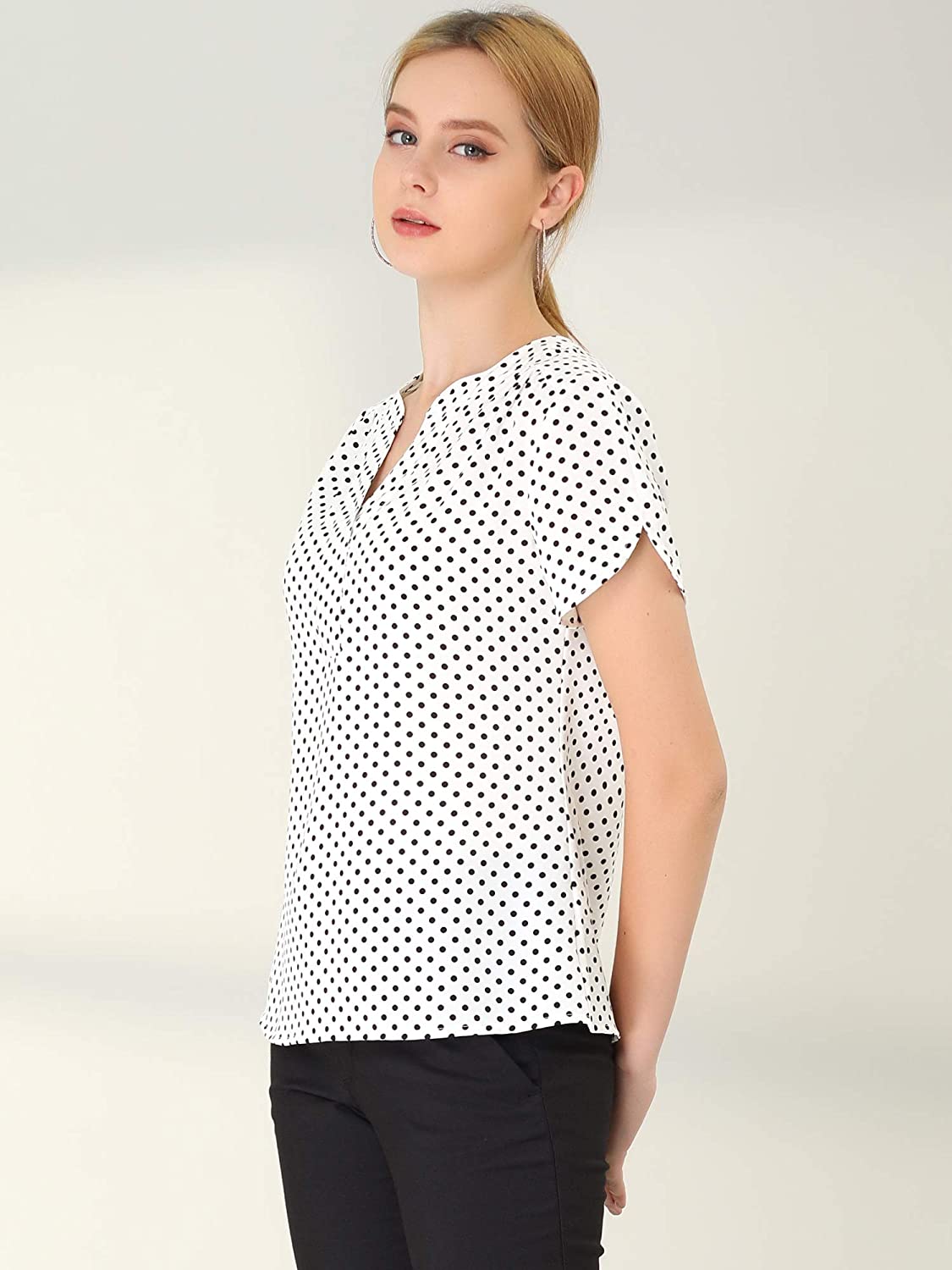 Allegra K Women's Polka Dots Print V Neck Short Sleeve Elegant Work Office Tops