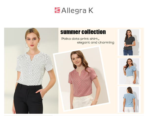 Allegra K Women's Polka Dots Print V Neck Short Sleeve Elegant Work Office Tops