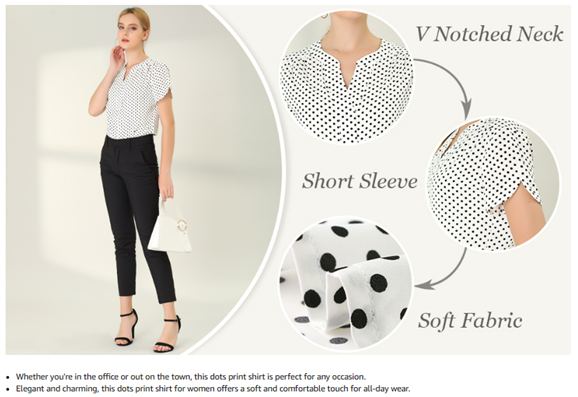 Dots Print, Short Sleeves, V Neck, Cute and Soft, Office Blouse