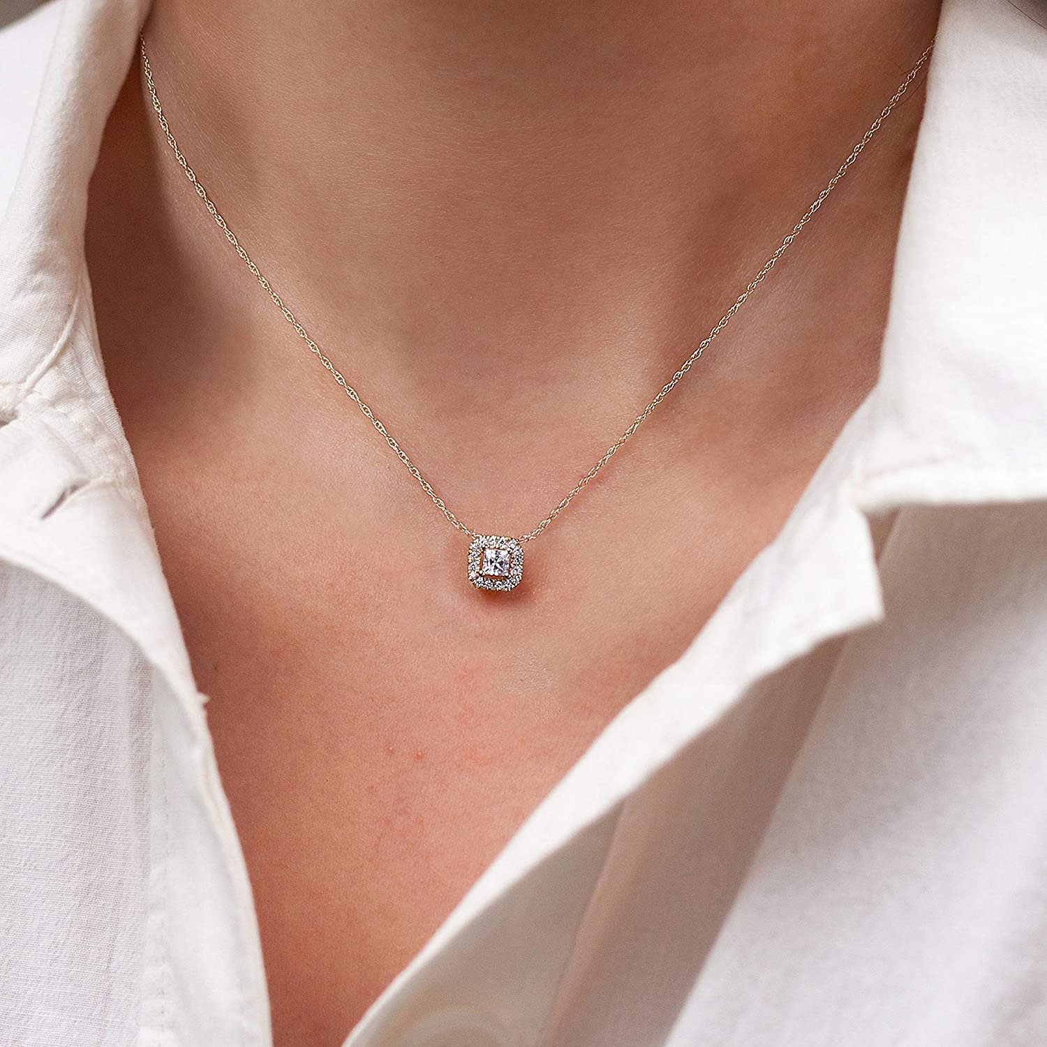 Gloffery 925 Sterling Silver Birthstone Round Solitaire Pendant Dainty Halo Necklaces for Women, Anniversary Valentine's Day Birthday Mother's Jewelry Gifts for Girls Women Wife Mom Girlfriend