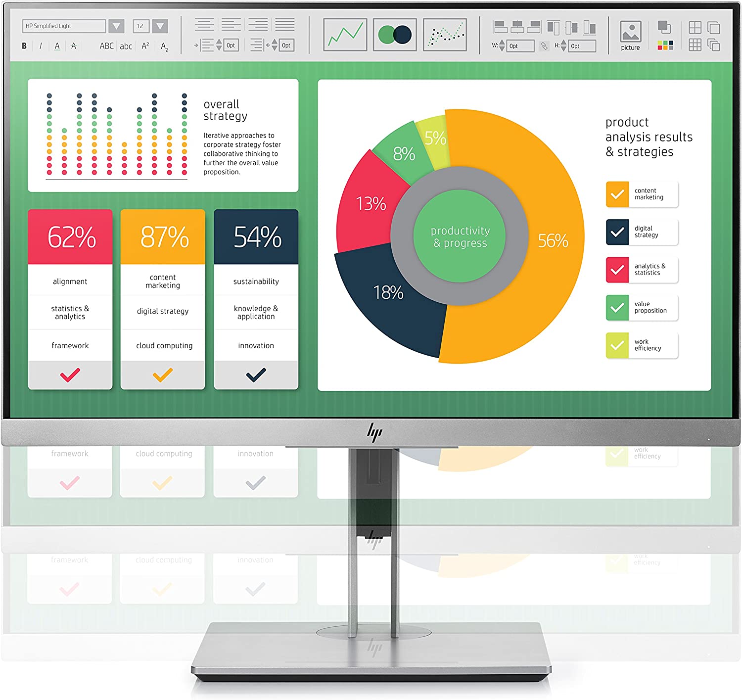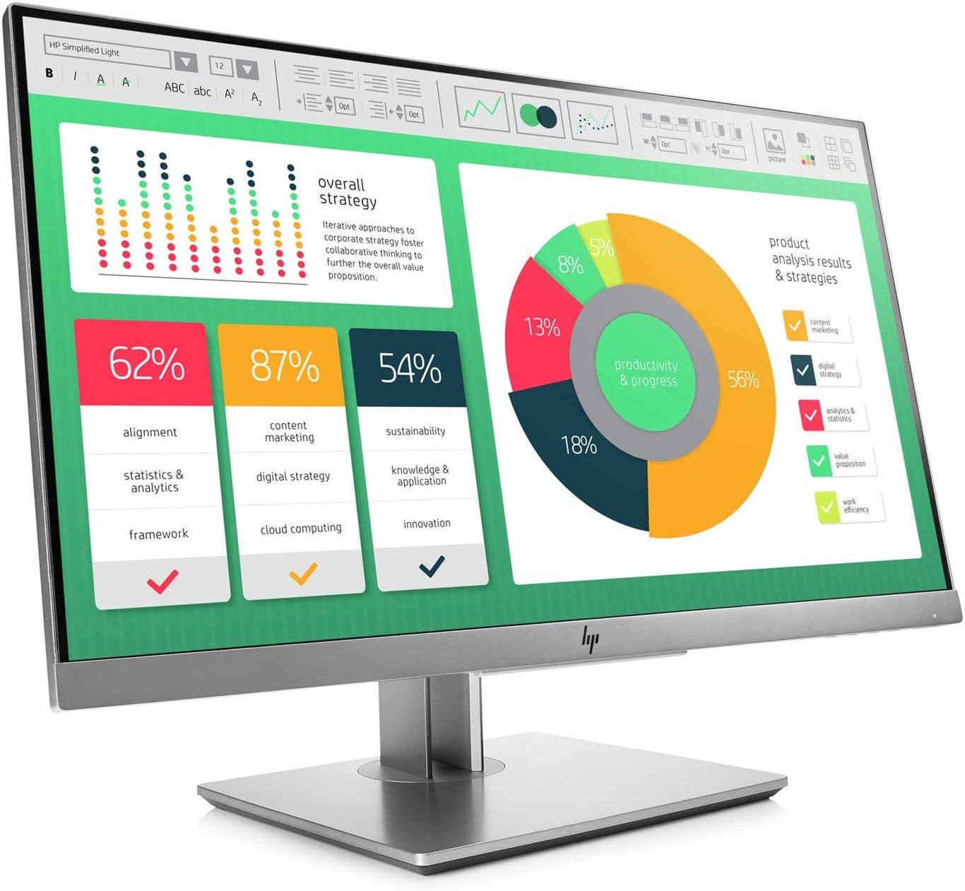 Style meets substance in a strikingly modern business display crafted for optimal viewing, productivity, and ergonomics. The HP EliteDisplay E223 21.5-inch Monitor has a 3-sided micro-edge bezel for seamless multi-display tiling and 4-way adjustability so you can comfortably power through your day. Expand your productivity with uninterrupted views of one screen or many with a 3-sided micro-edge bezel that supports virtually seamless arrays. Get crisp visuals from any angle on the 1920 x 1080 Full HD resolution, 21.5” diagonal IPS screen.The product is multiple voltage compatible that voltage arrange is100-240V