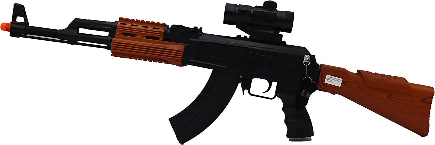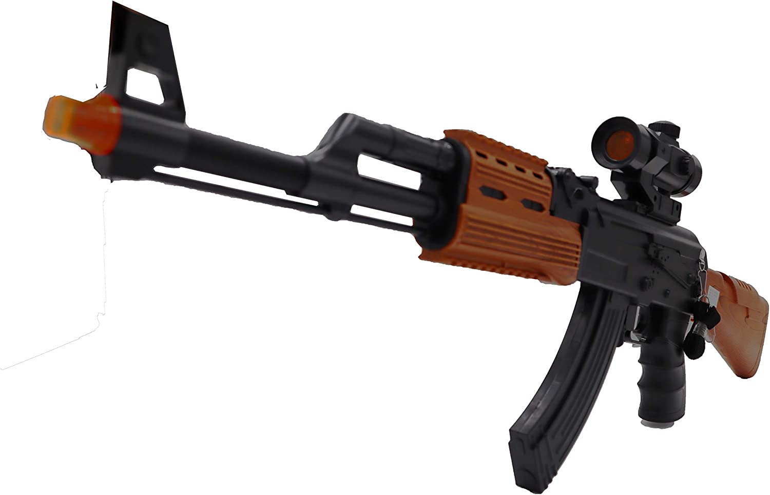 Realistic Looking Toy Riffle with dazzling light and firing sound effect. JOYSAE’s AK-7744B gun toy is the best gift for little boys during the holiday season.