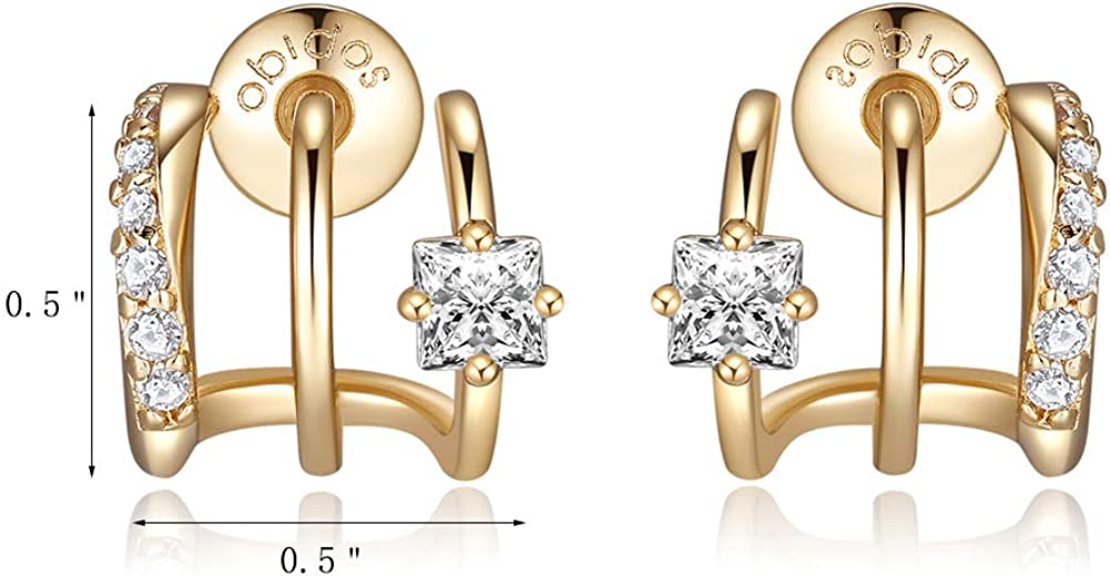 Born ready-to-wear, our (already) stacked Earrings are a must if your lobes are single pierced. Our 14K Yellow Gold plated split wrap huggies are fashion-forward and can dress up any occasion. These beautiful solid small hoop earrings are the perfect fashion accessory for any woman!