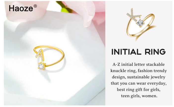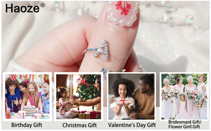 • ADJUSTABLE RING SIZE: Open Design and Free Size. Crystal letter ring have adjustable size, it is easily and comfortably fits all finger sizes, cute rings gifts for teen girls, girls, women.