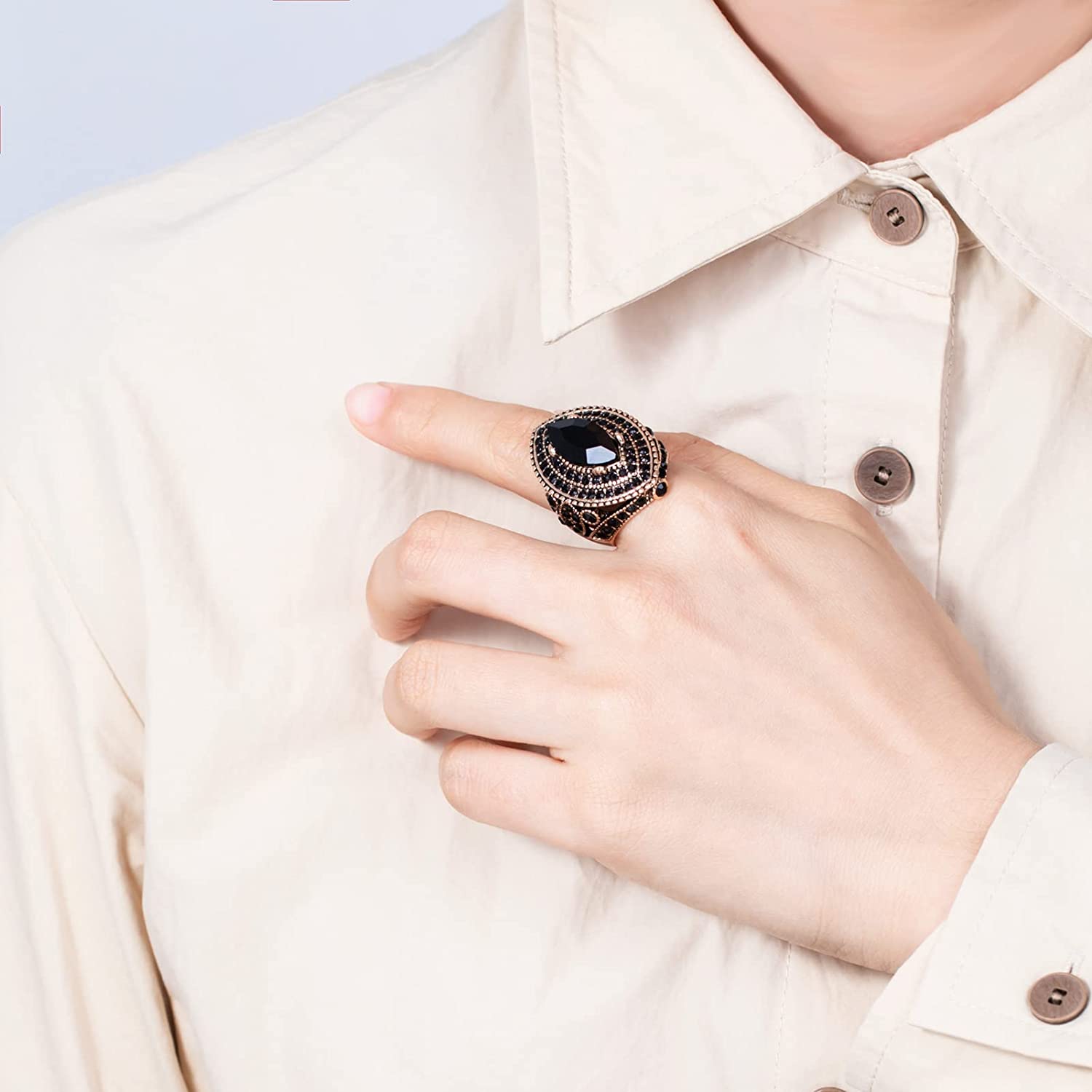 CKHAO Women Ring - 32mm Big Size Antique Gold Plated Turkish Style Black Gemstone Vintage Ring Women Jewelry J0769BLK