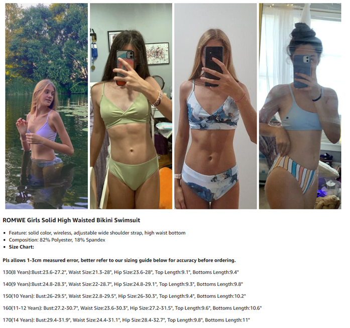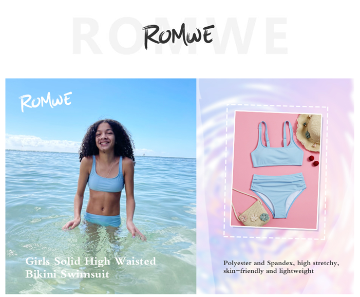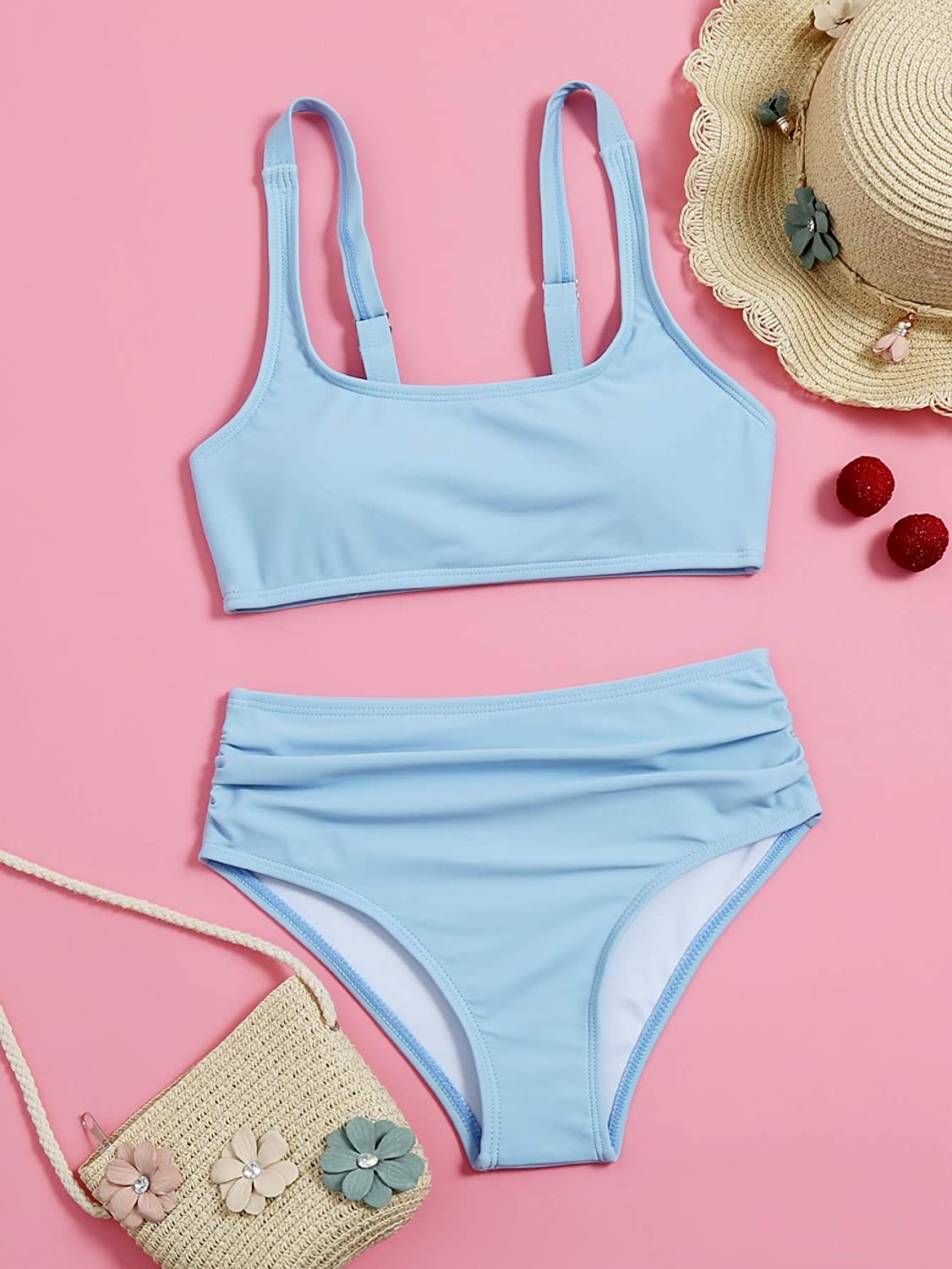 Romwe Girl's 2 Piece Swimsuit Sport Solid High Waist Bikini Set Bathing Suit