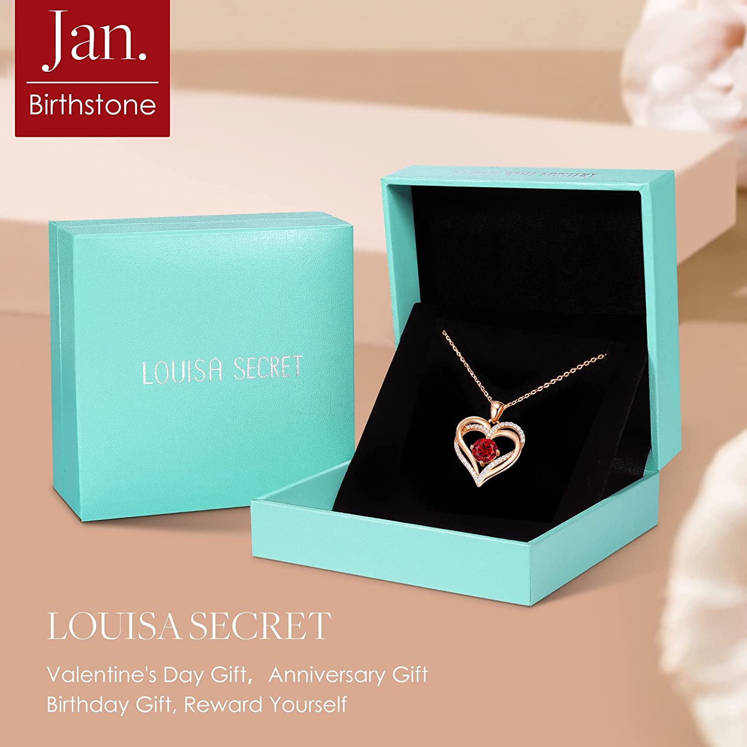 LOUISA SECRET Love Heart Birthstone Necklaces for Women, 925 Sterling Silver Women Pendant Necklace, Mother’s Day Birthday Anniversary Jewelry Gift for Woman Mother Mom Wife Her Girlfriend Girl