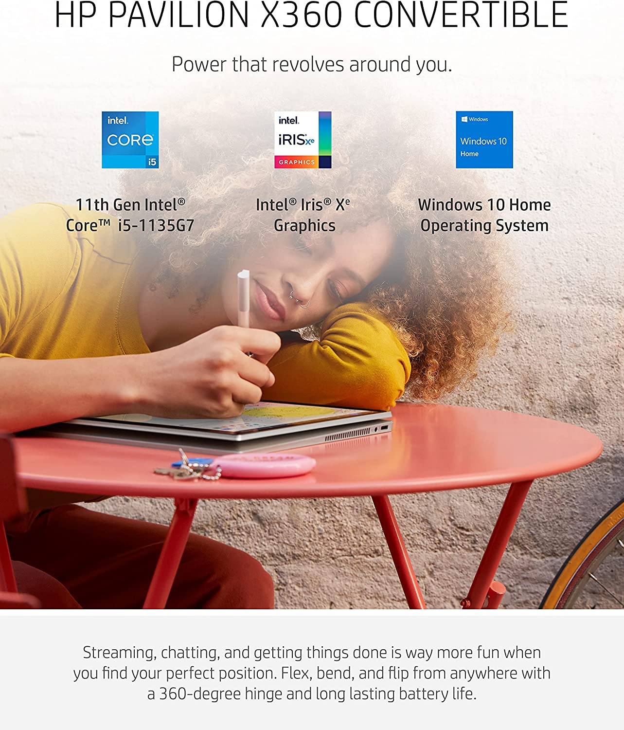 HP Pavilion x360 14” Touchscreen Laptop, 11th Gen Intel Core i5-1135G7, 8 GB RAM, 256 GB SSD Storage, Full HD IPS Display, Windows 10 Home OS, Long Battery Life, Work & Streaming (14-dw1024nr, 2021)