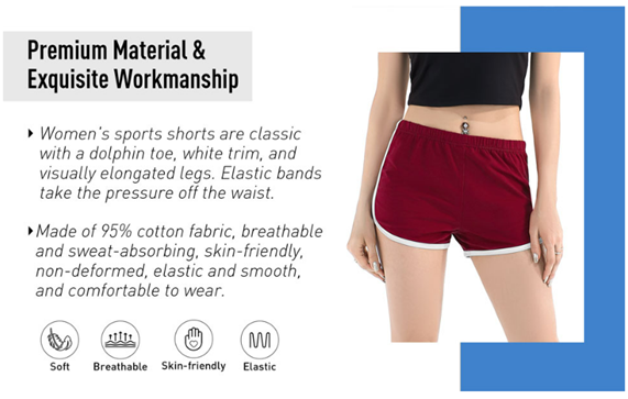 CLASSIC DESIGN: Women's sports shorts are classic with a dolphin toe, white trim, and visually elongated legs. Elastic bands take the pressure off the waist. Be extra fashionable while doing your daily routine exercise with these high-quality shorts.
