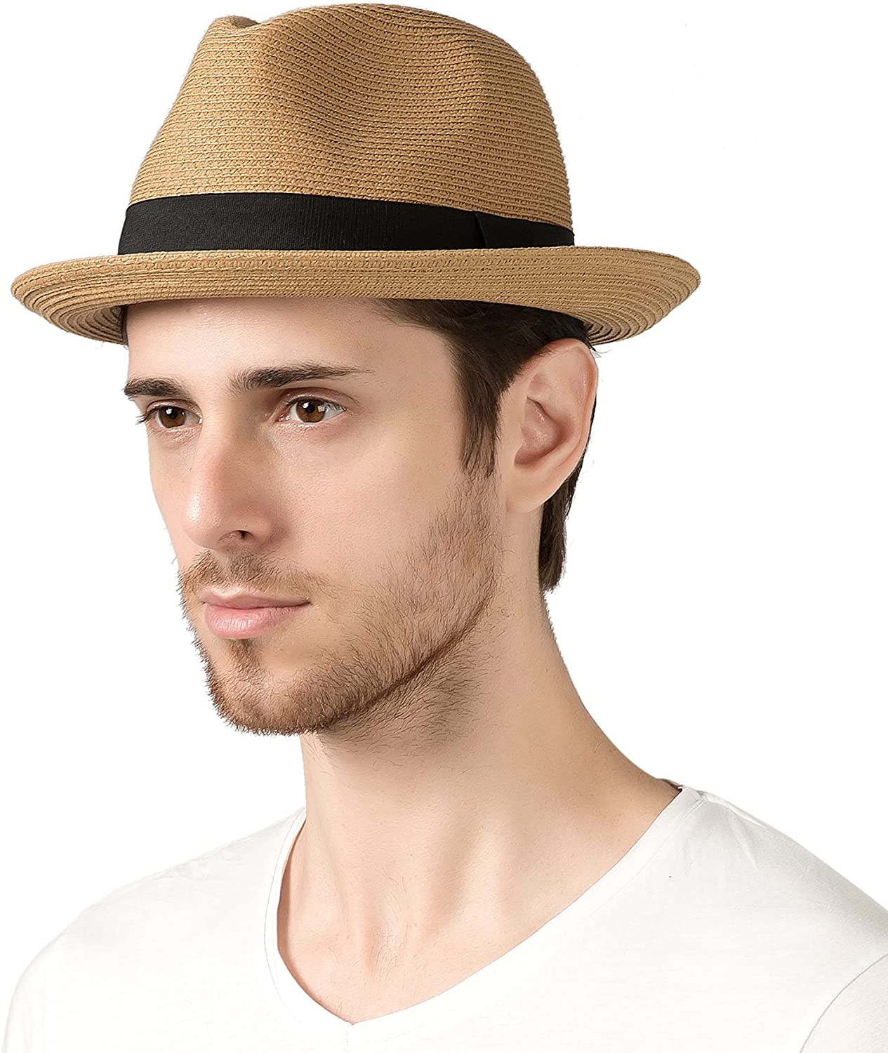 Upgrade your summer style with Lanzom's Straw Fedora Hat - the perfect Summer Beach Sun Hat for Men and Women who love outdoor travel, holiday, or beach playing.