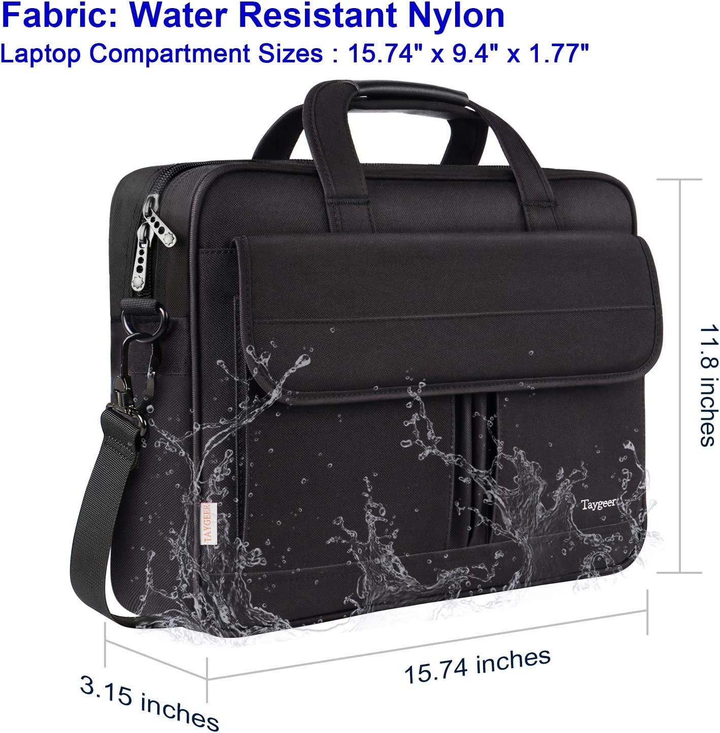 Taygeer Laptop Bag 15.6 Inch, Business Briefcase Gifts for Men Women, Water Resistant Messenger Shoulder Bag with Strap, Durable Office Bag, Carry On Laptop Case for Computer/Notebook/MacBook,Black