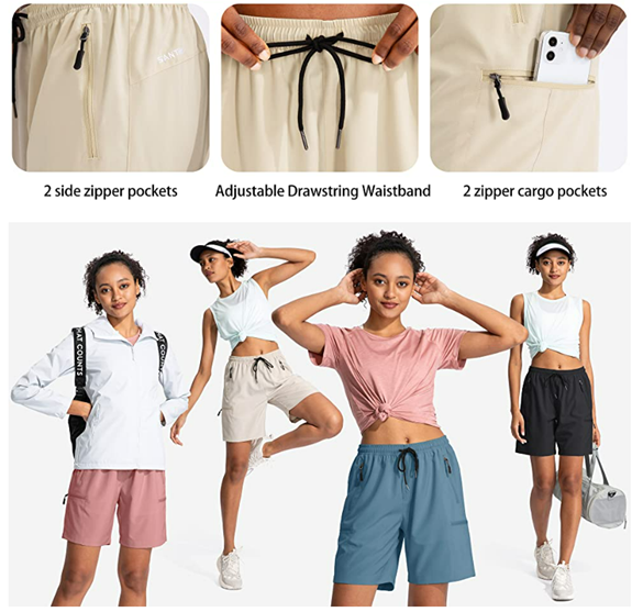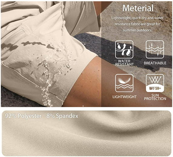 Ligtweight & Quick Dry Fabric: The womens hiking shorts crafted of lightweight, quick dry, breathable and water-resistant fabric helps to repel light moisture to keep you cool and fresh all day.