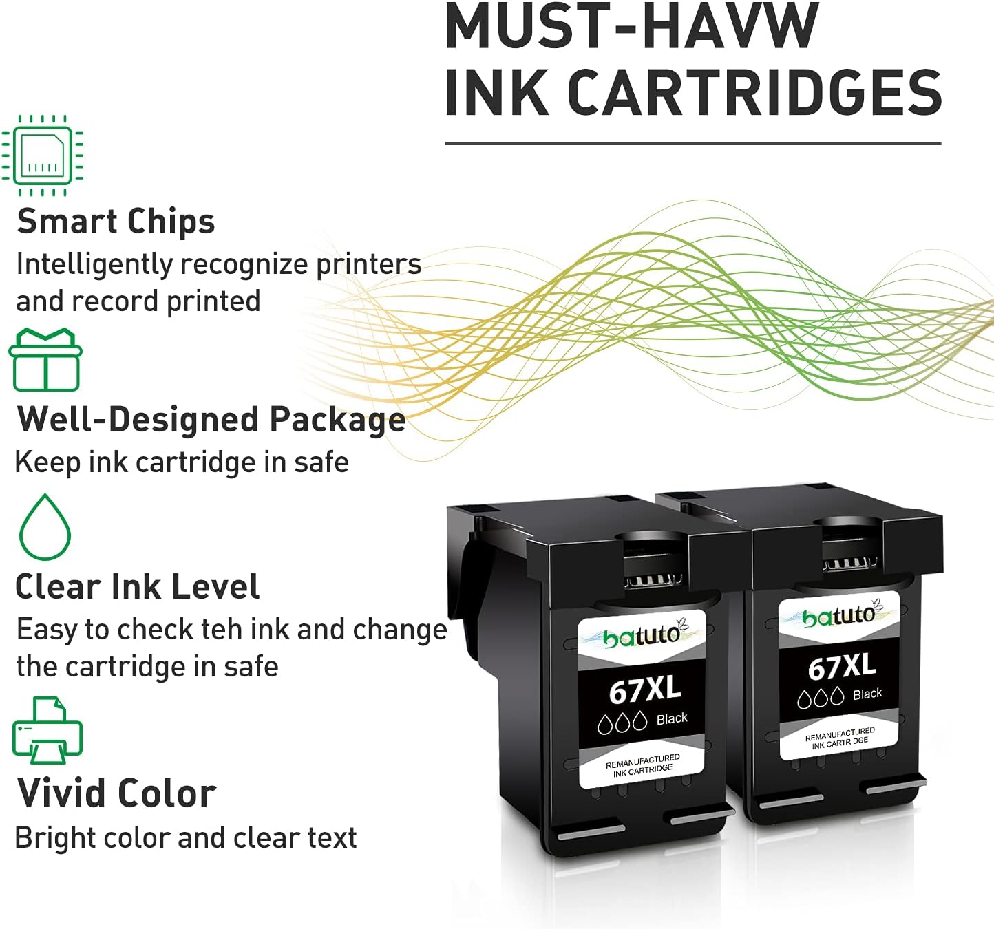 - ✅PACKAGE INCLUDE: 67xl hp printer ink Remanufactured ink cartridge HP 67 XL 2 black