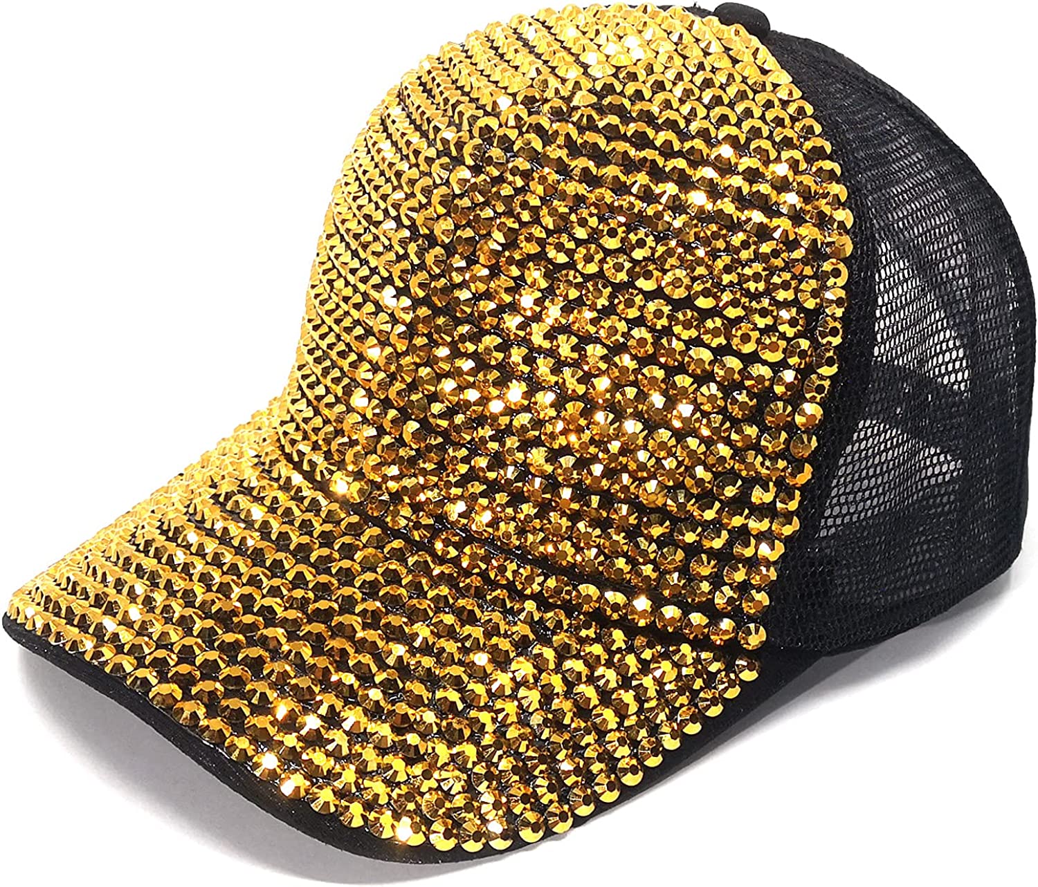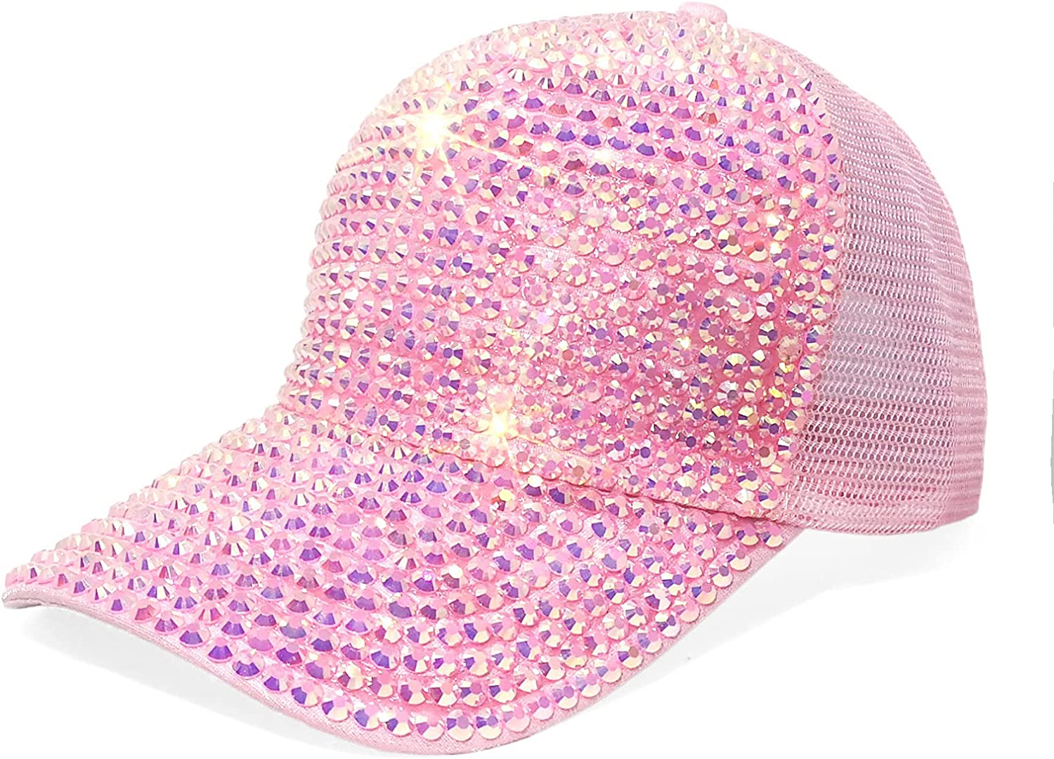• 【DESIGN】: Unique design with Colorful bling studded rhinestone, makes you look charming and fashionable. Mesh Hats with ponytail holes Provide maximum comfort ,breathable,Suitable for any occasion, Amazing looking in the sun