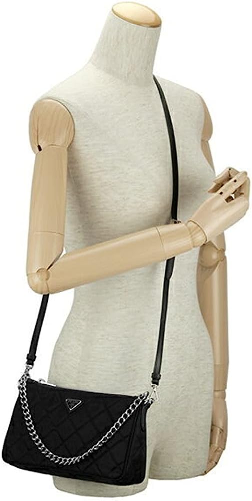 Prada Quilted Tessuto Nylon Chain Black Convertible Shoulder Bag 1BH026