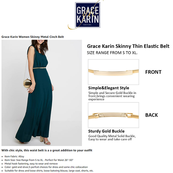 GRACE KARIN Women Skinny Metal Cinch Belt Gold Waistband Elastic Waist Belt CL633