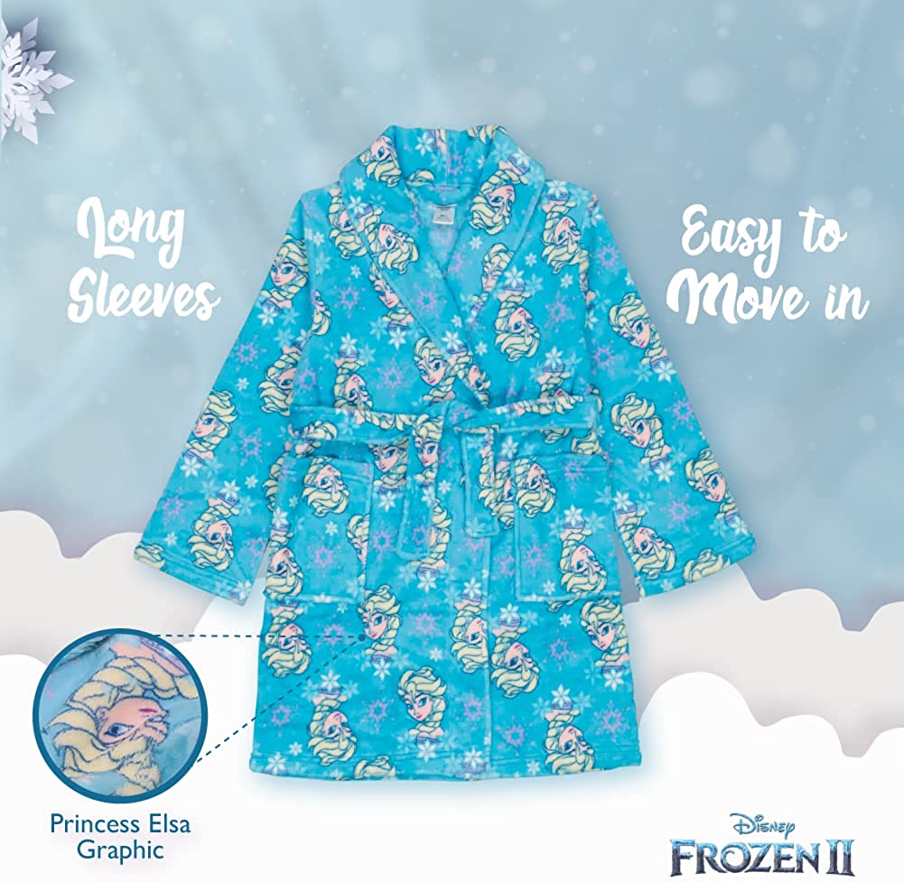 WARM & COZY “FROZEN” BATHROBE: Get your child ready for adventures saving Arendelle in this adorable Elsa robe. Your little one will stay cozy while practicing her freezing magic. Officially licensed Disney merchandise.