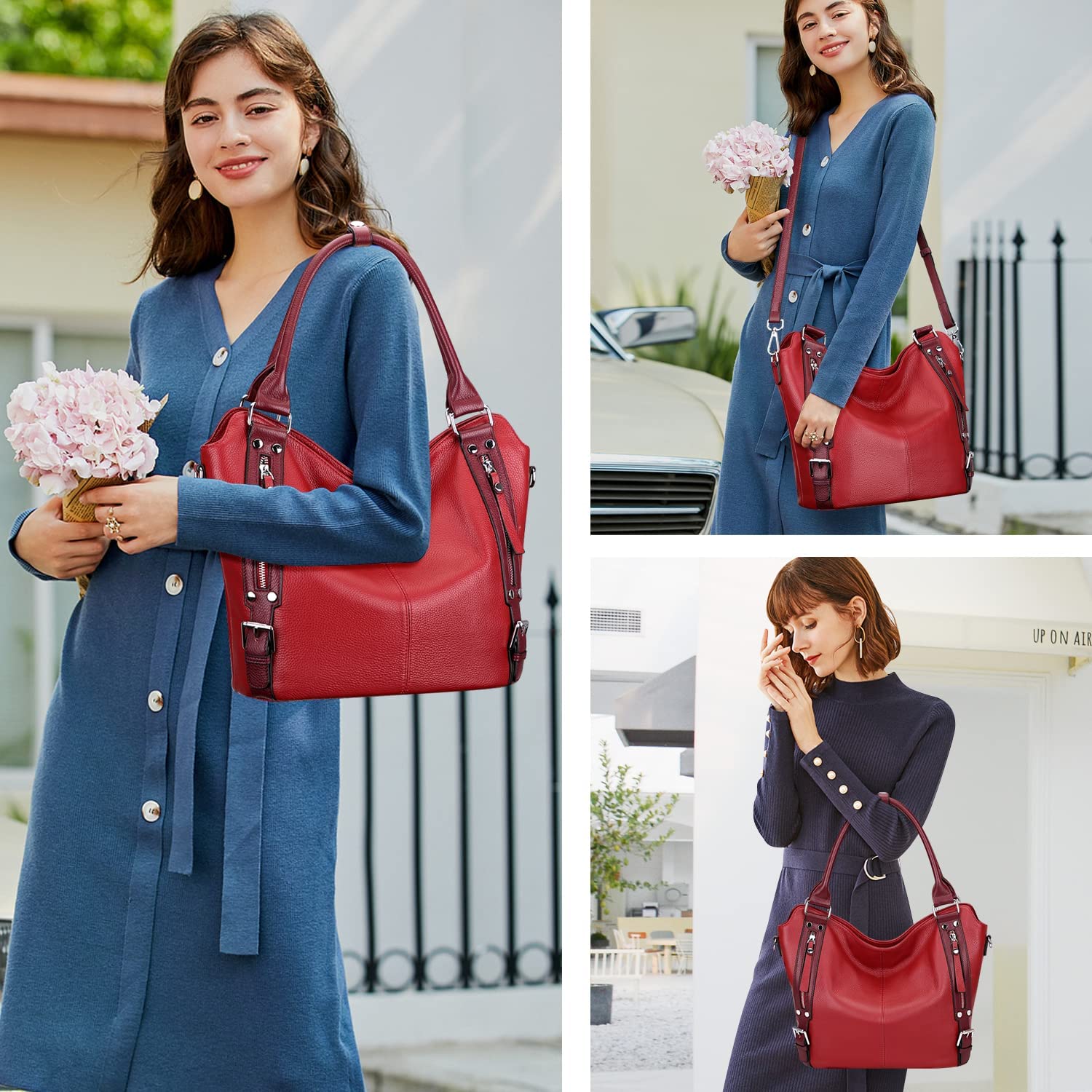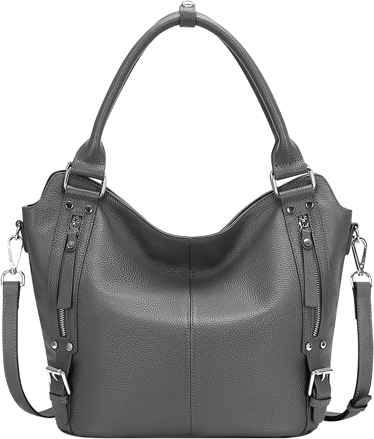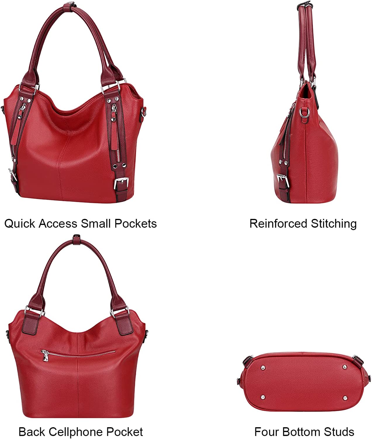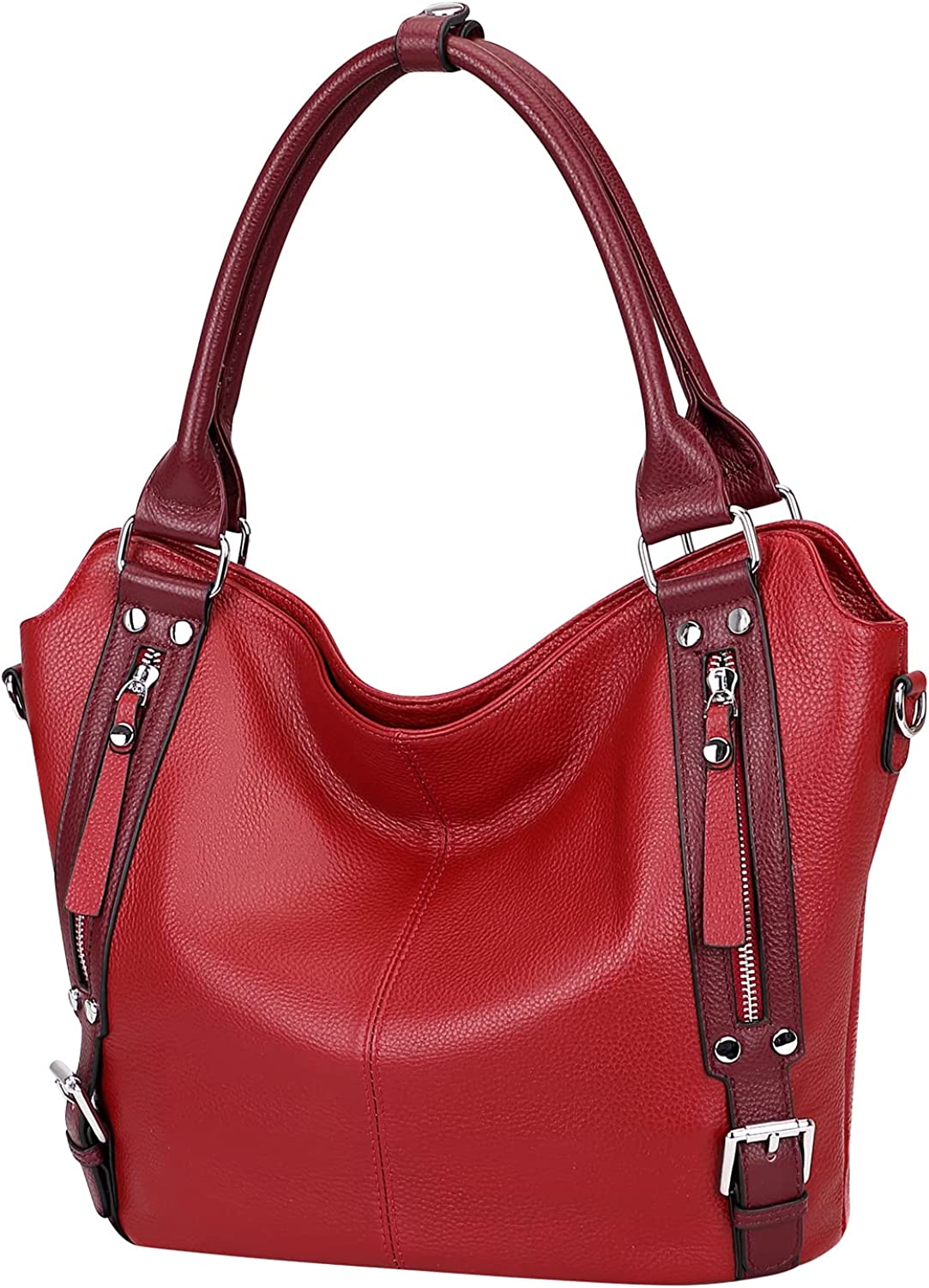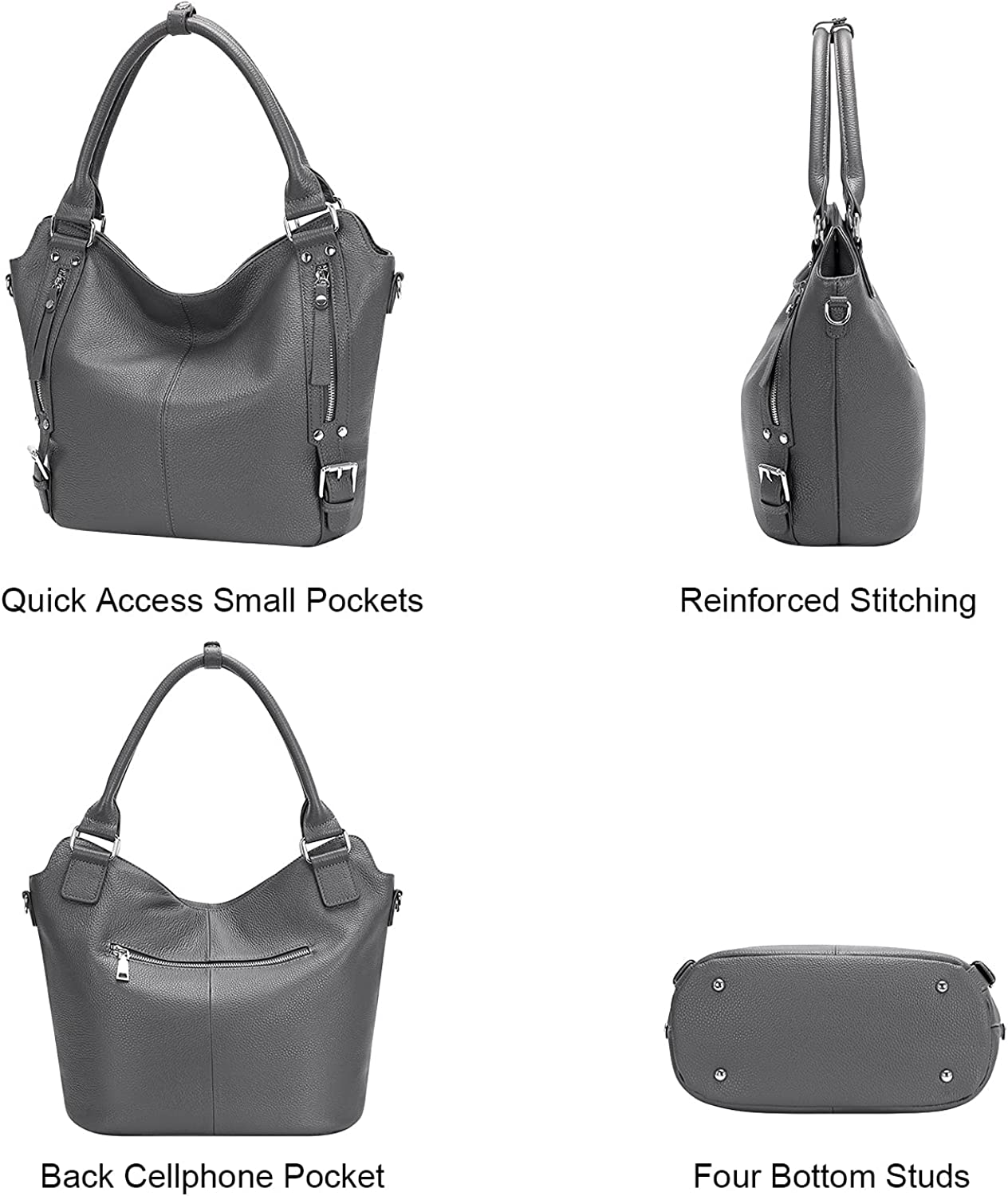 • GENUINE LEATHER -- SOFT Leather large hobo tote purse made of genuine leather with pebble texture; The silver handware is high quality and durable. Bottom with 4 rivets for protecting your handbags bottom away from abrasion.