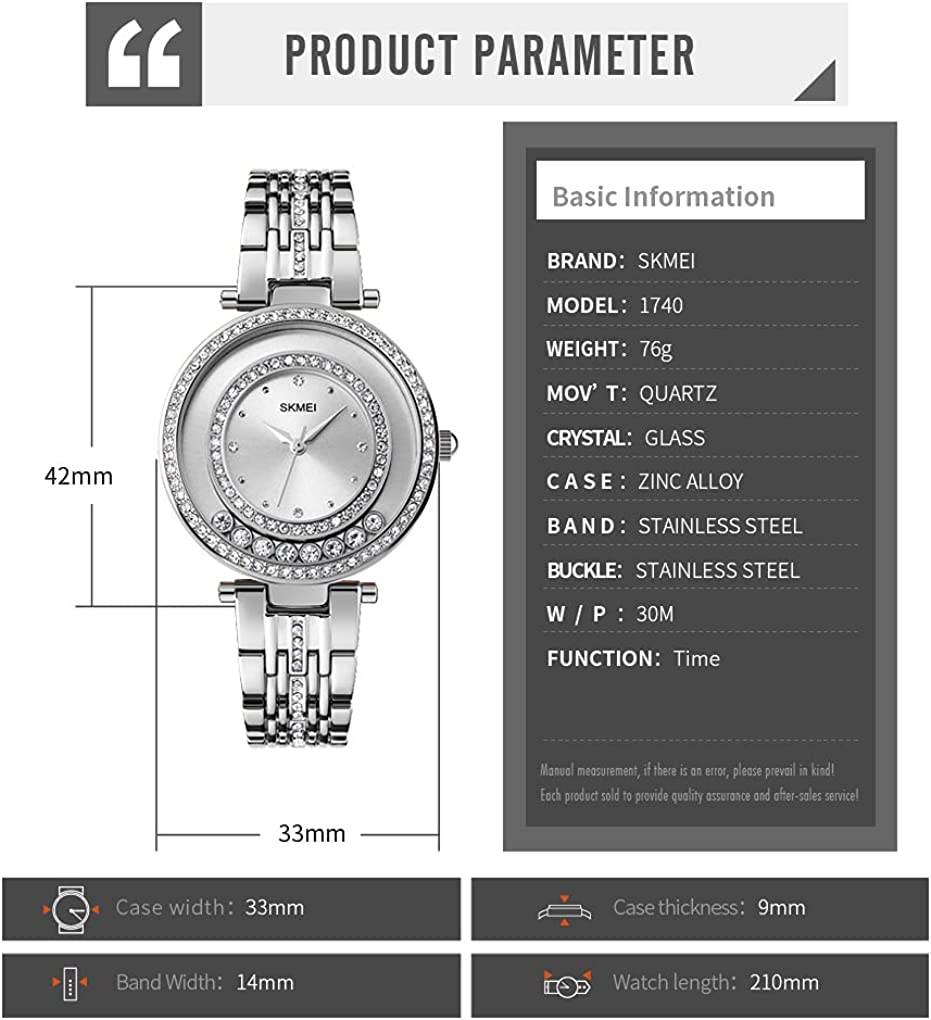 SKMEI Lady Watches for Women Female Bling Dress Fashion Luxury Diamond Business Casual Analog Quartz Waterproof Stainless Steel Wristwatches Gifts
