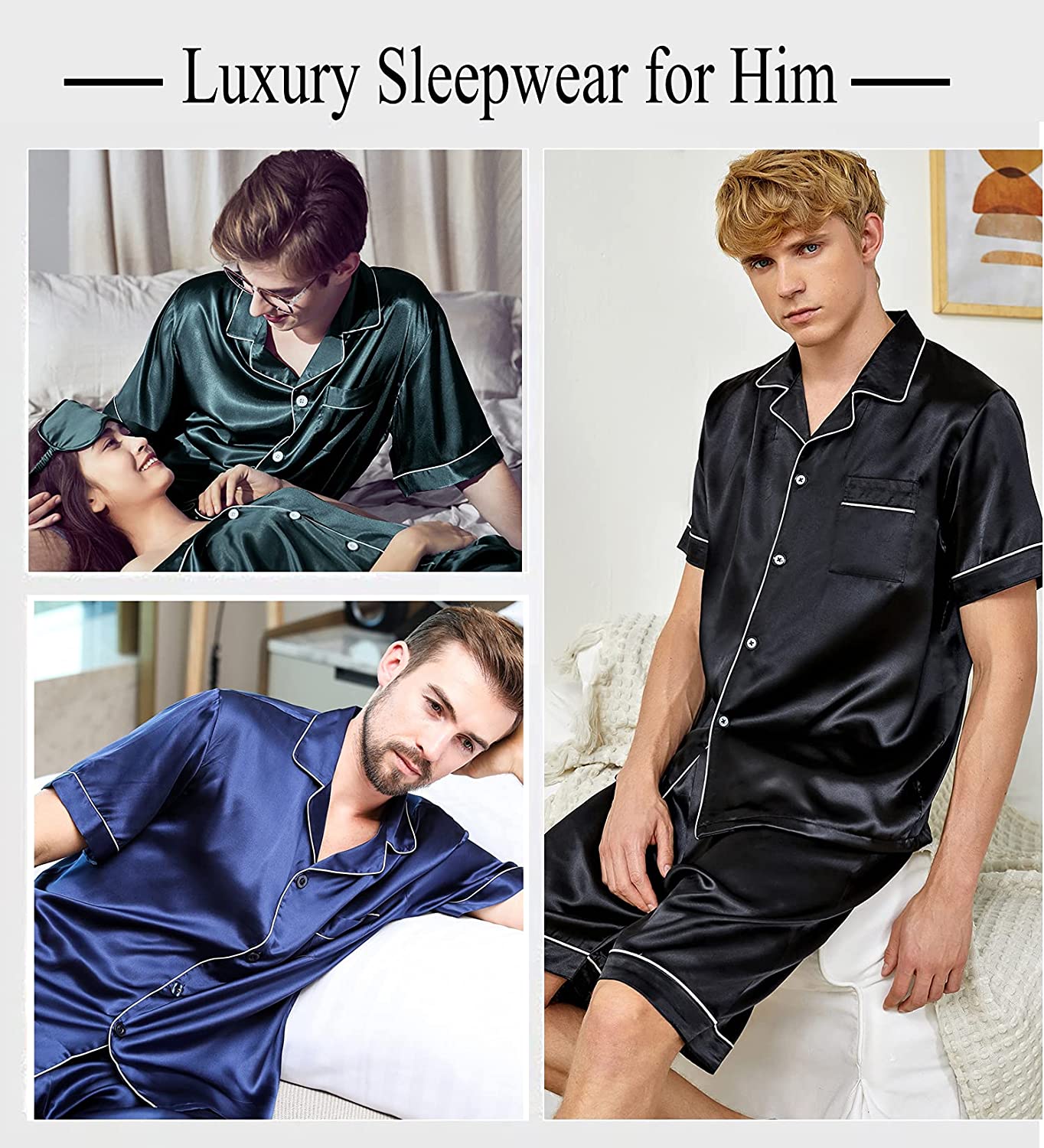 - PRESENT - The men satin sleepwear sets is perfect for sleeping, bathing and lounging indoor and outdoor. Great choices for your husband, boyfriend, brother and son as a birthday gift and beautiful present for Father's day, Valentine's Day and Christmas.
