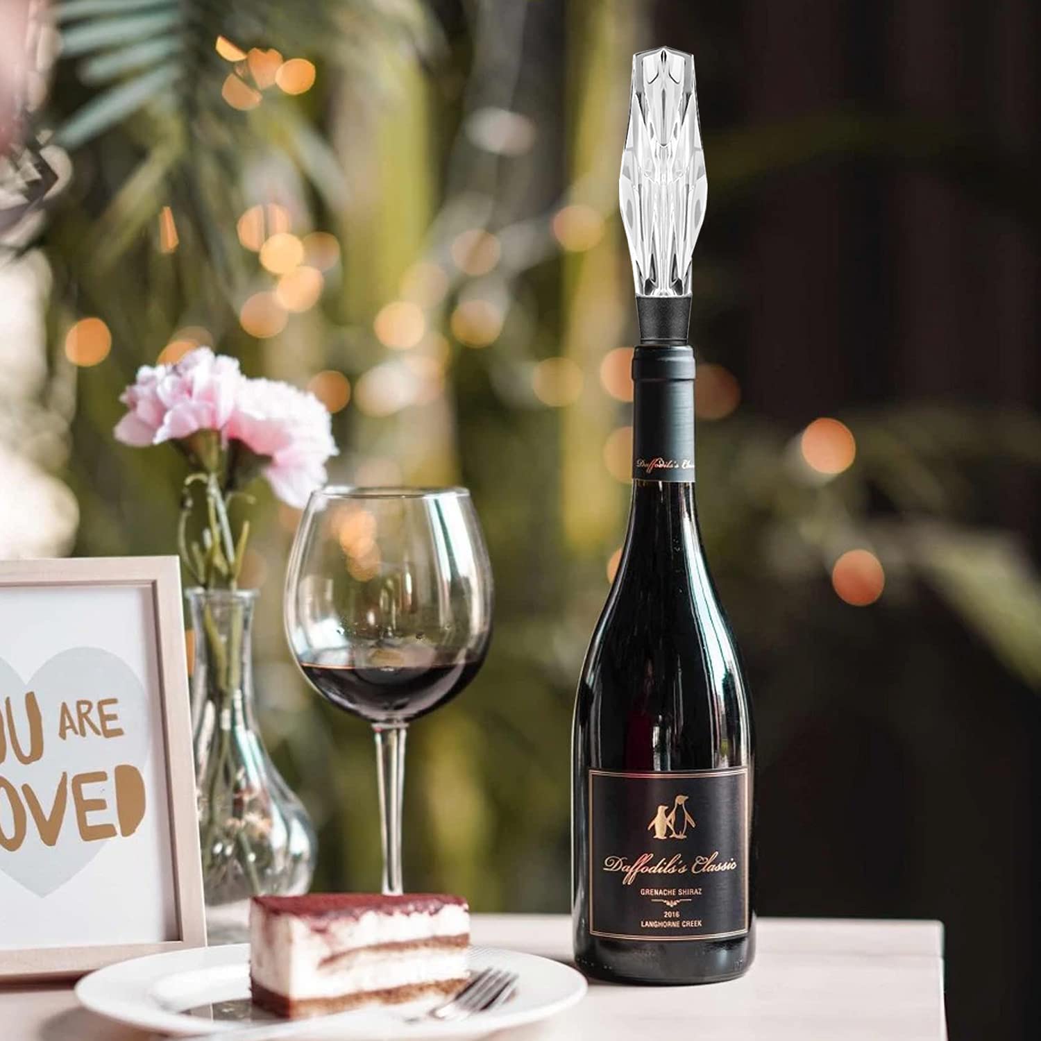 • ? SAFE AND DURABLE - Premium 304 stainless steel and BPA-free acrylic will never change the taste of your wine. Highest quality certified food grade materials ensure pure aroma of your wine. The tapered stopper with with stripes provide a leak-free seal for wine bottles of all sizes.