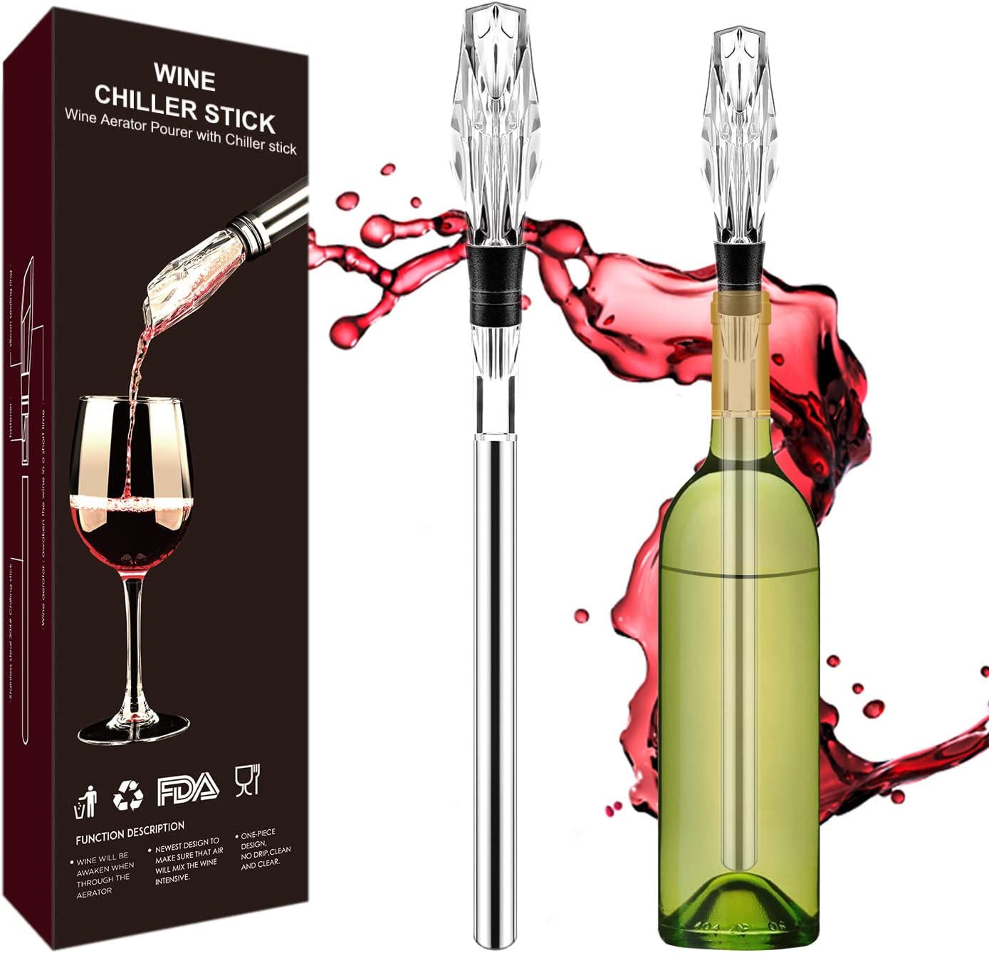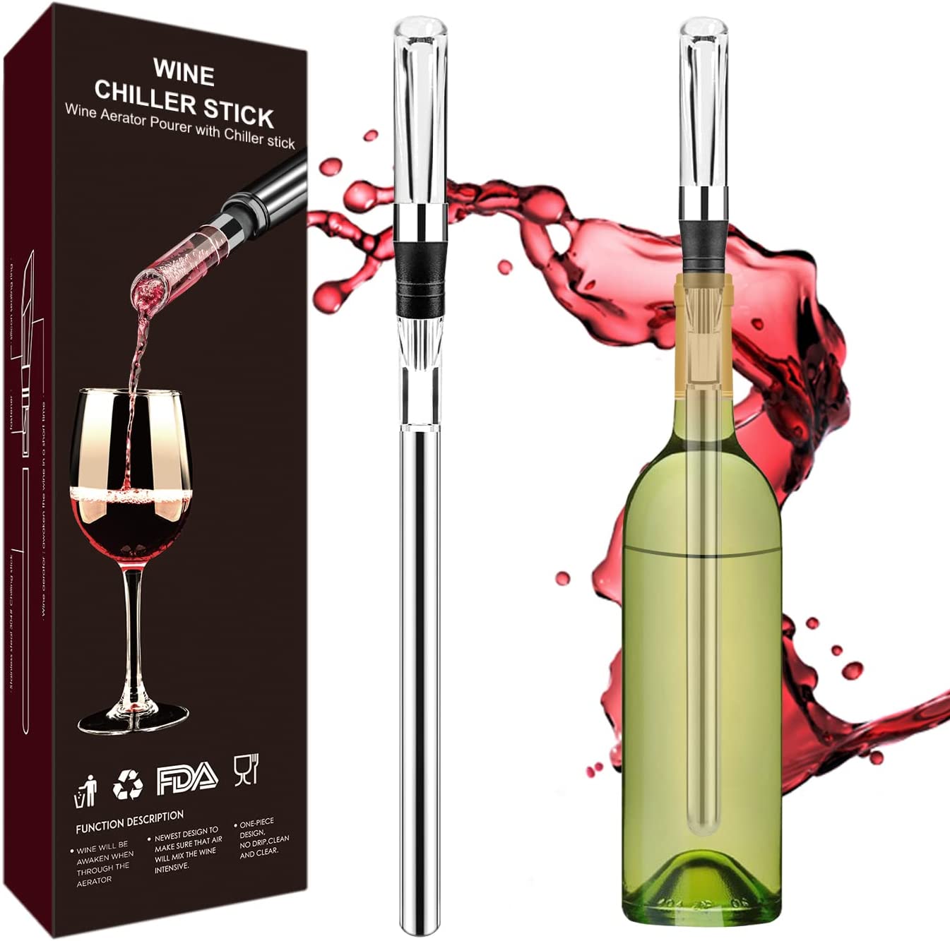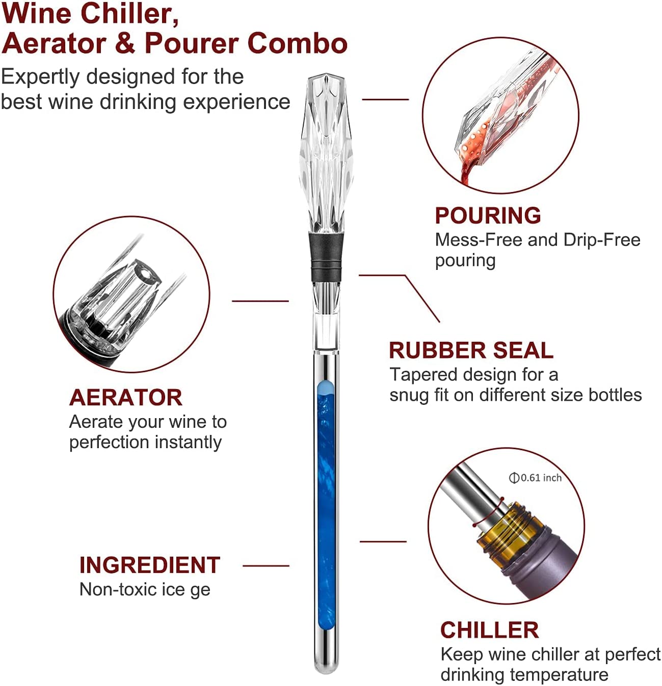 Wine Chiller Stick Wine Aerator, Premium Iceless Wine Chilling Rod, Aerating Pourer and Decanter Spout - Wine Accessories Gifts for Wine Lovers Man Women