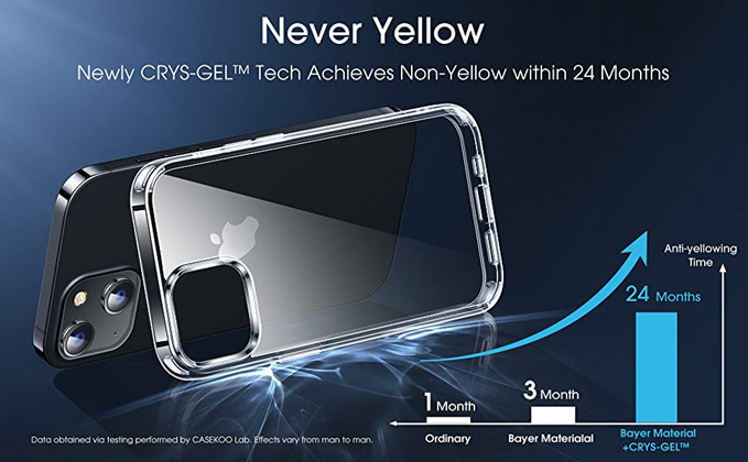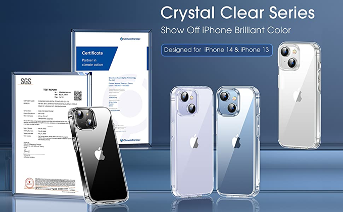 • [Crystal Clear & Never Yellow]: Using high-grade Bayer's ultra-clear TPU and PC material, allowing you to admire the original sublime beauty for iPhone 14/13 while won't get oily when used. "Not yellowing" thanks to the nano-grade diamond anti-oxidation coating which can effectively resist 99.9% of yellowing.