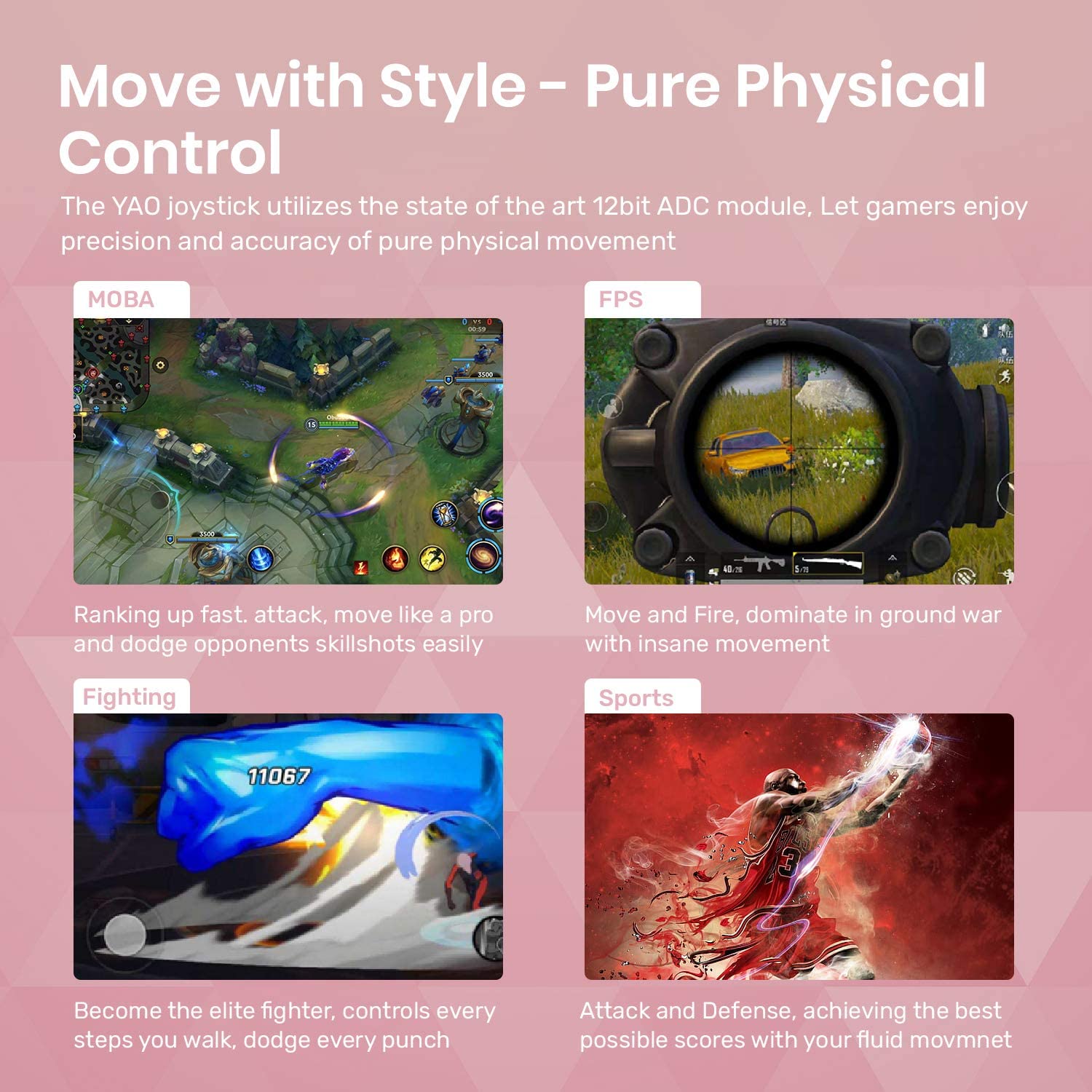 Pure Physical Control: The YAO Mobile Joystick features 12bit ADC Module, brings back the familiar physical movement to mobile games. offers gamer percise and fluid control over in-game character, complex and trick moves can be achieved easily. Textured Joystick for more comfort and grip