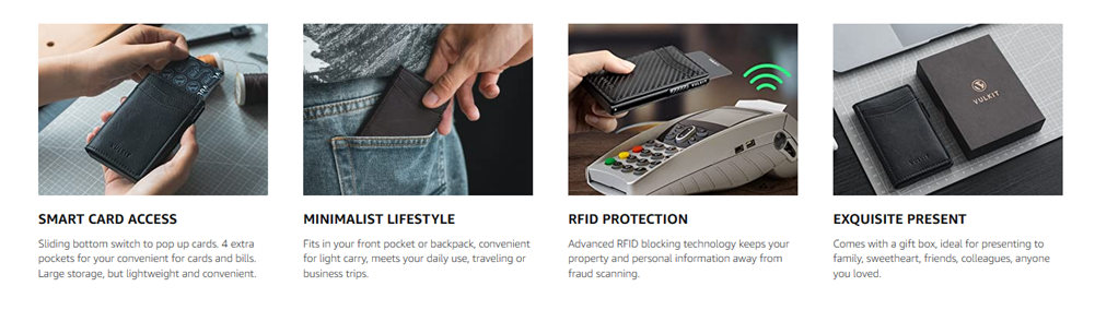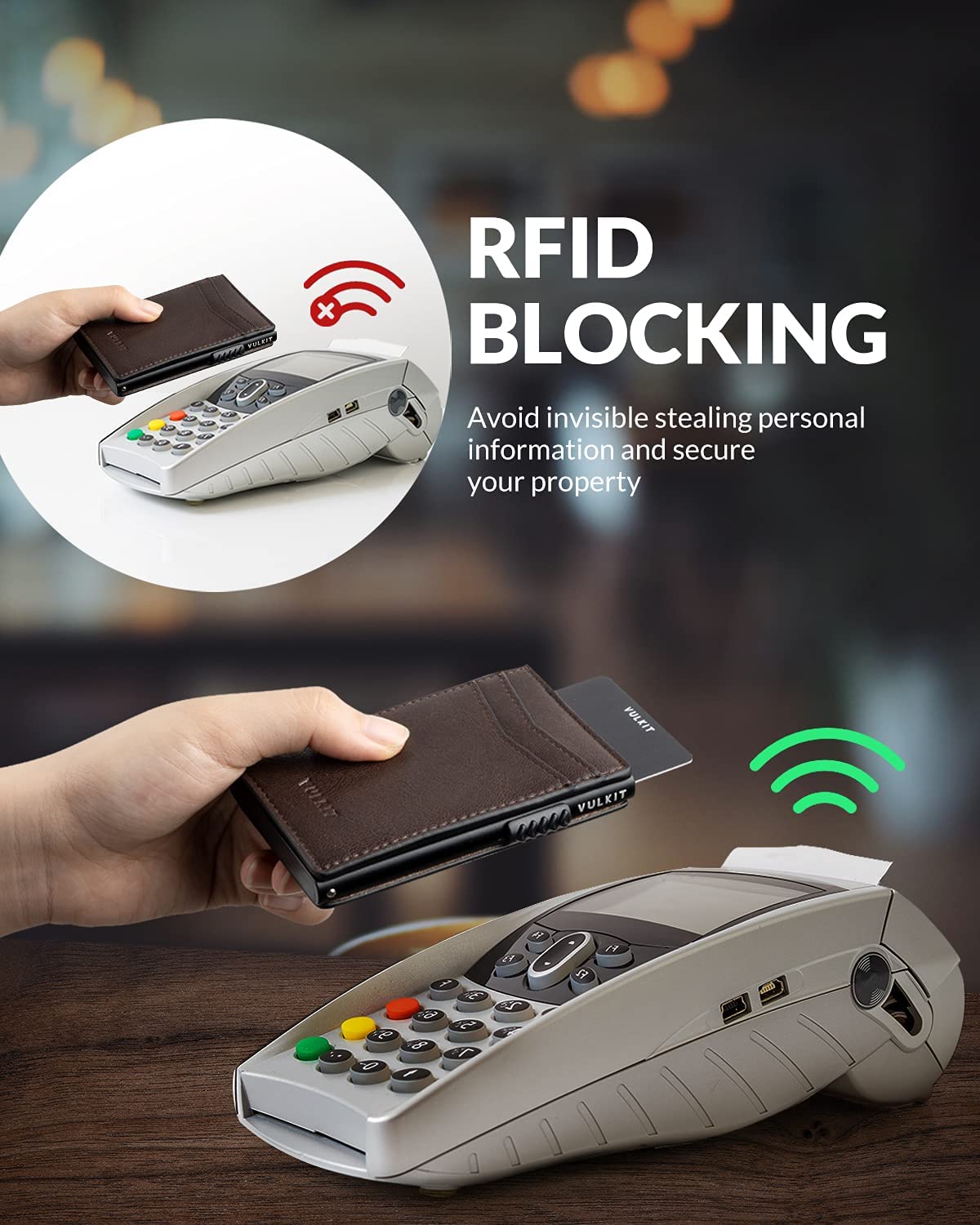 VULKIT Card Holder Pop Up Cards Slim Leather Wallet RFID Protection Up to 11 Cards Card Case