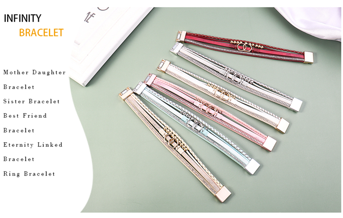 • Layered Bracelets: The silver infinity circles, silver beads and shinny rhinestone are telling “The love between us is forever”.