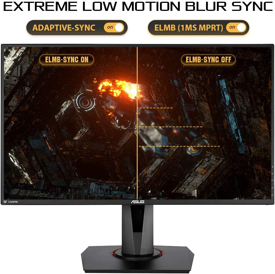 The 27” ASUS TUF Gaming VG279QM features Fast IPS technology which enables 1ms (GTG) response time for sharp gaming visuals with high frame rates at 280Hz refresh rate (overclocked). Enjoy a super-smooth gameplay with ASUS-Exclusive ELMB Sync Technology which enables motion blur reduction and adaptive sync technology to be used simultaneously.